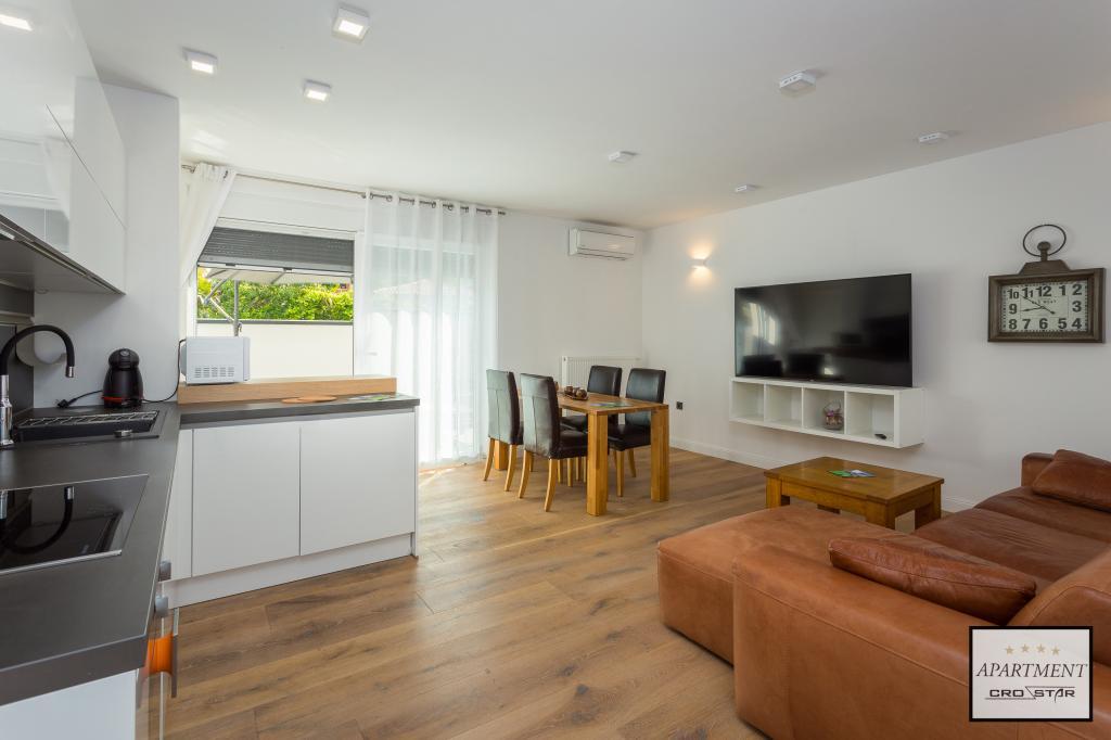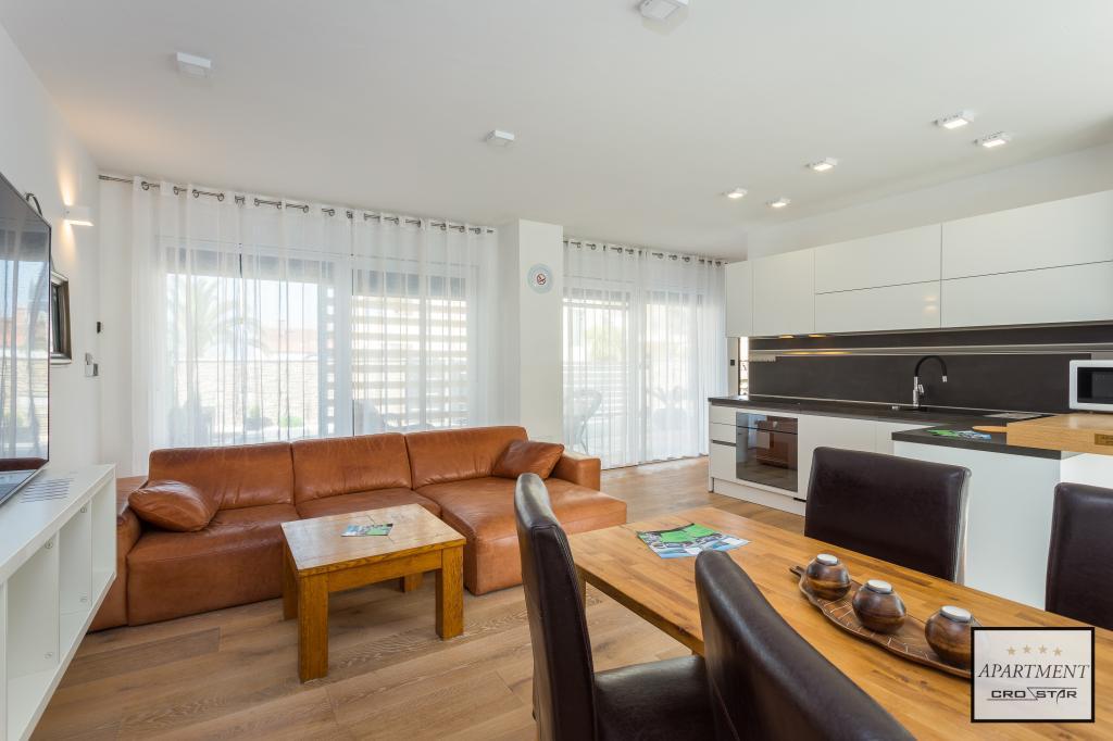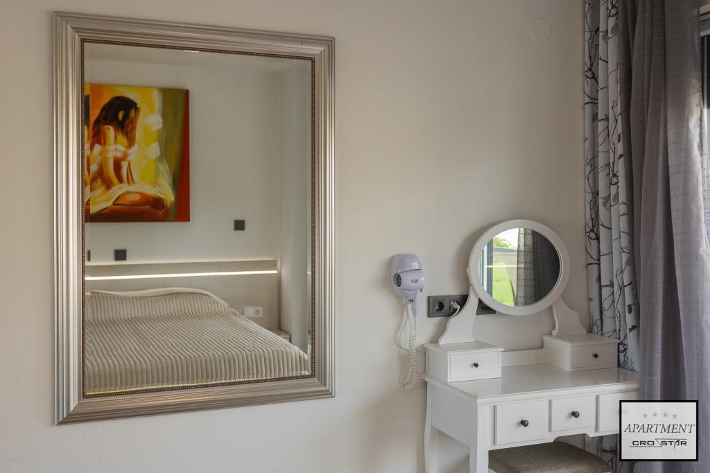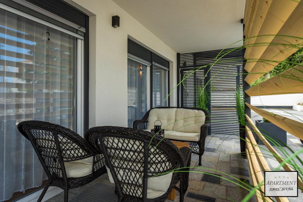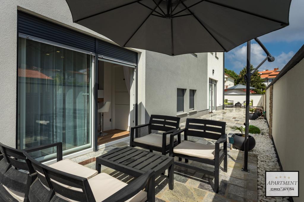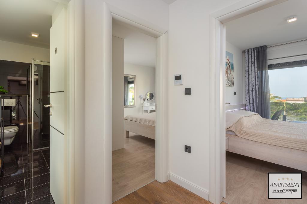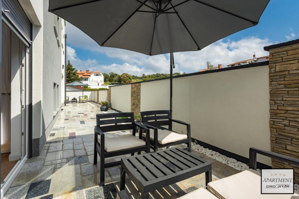 Cro/star is a beautiful house with two bedrooms, both of which have a balcony with a view of the sea and beyond. It also contains a bathroom with toilet + a separate toilet as well as a gallery with a large bed for two people. Living room together with kitchen and dining table on two sides of a large ground floor terrace, one of which has a pavilion. Then a roof terrace of 24 m2 for sunbathing with a wonderful view of the sea and cheeses. There is a parking lot for one car in front of the house and everything is inside the yard. The beach is only 200 meters away and approximately 5 minutes on foot. Shop, dentist and restaurants are only 5 minutes by car to the city of Pula and 5/10 minutes to other destinations if desired. The house has 4 stars. The beach is beautiful for everyone's taste.