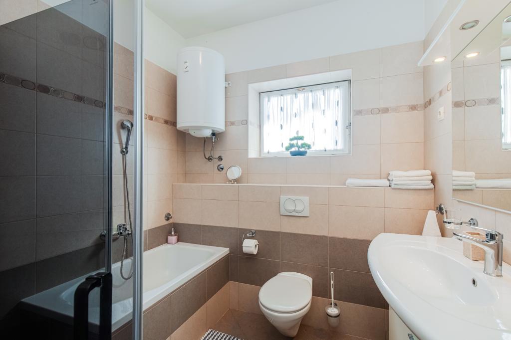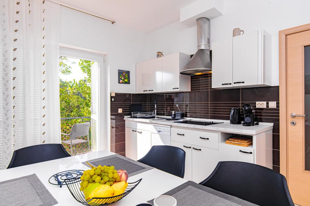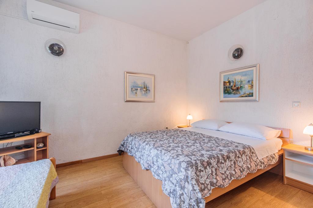 KOSTA APARTMENTS are located in Punat, island of Krk, ca. 100 m from the sea. The house has a large parking lot. The possibility of using a fireplace. Apartment A (4+1) 4 stars It consists of a hallway, bathroom, toilet, kitchen, living room, 2 bedrooms, a smaller children's room and a balcony. Apartment B (1/2 + 1) - 3 stars It consists of a bathroom, a bedroom with an extra bed, a kitchen and a terrace. Apartment C (1/2 + 1) - 3 stars It consists of a bathroom, bedroom, kitchen with an extra bed and a terrace.