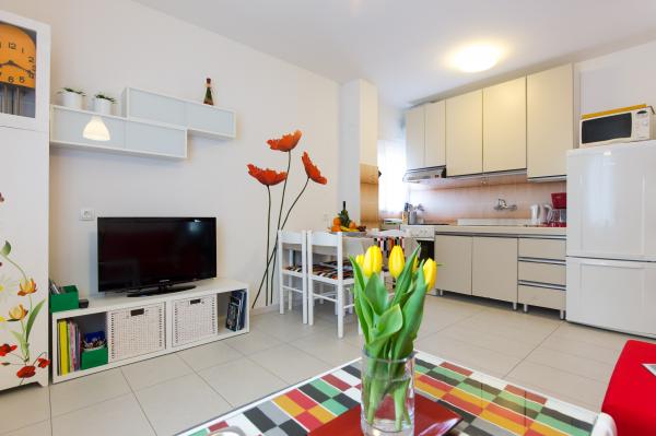 Situated in the quiet part of Punta, our apartments are ideal for those seeking a relaxing holiday. The house is located within walking distance of the local beaches (400m), the shop and the center. \\ Home Away From Home \\ are 2 apartments (66m² and 80m²), which consist of 2 bedrooms with double bed (1. 90mx 2m, another double bedroom with double bed.) Fully equipped kitchen (microwave, toaster, cooker water, coffee maker), dining room and living room with sofa bed, ie a separate large living room in another apartment, bathroom and hallway.Guests have TV, wireless internet, air conditioning, central heating, safe. part has a free parking space for two to three cars in front of the house, and a large garden in the back of the house reserved for our guests with outdoor shower and grill, tables and benches. We know how important your temporary home is, so we did we will make all that you feel at home.