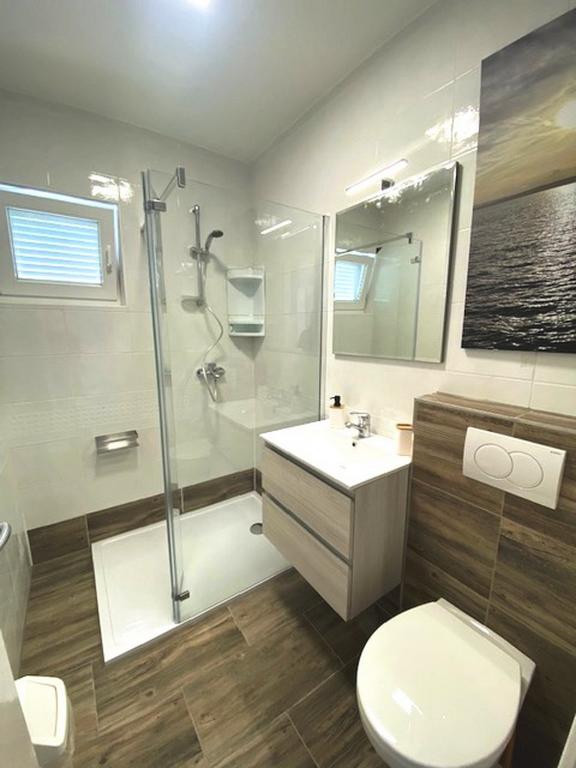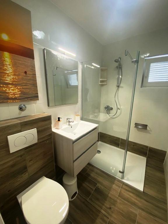 The apartments are located 7 minutes walk from the concrete beach and 9 minutes walk from the pebble beach. The house has 3 beautifully decorated apartments equipped with a dishwasher, air conditioning, Internet and SAT-TV. Each apartment has one parking space.