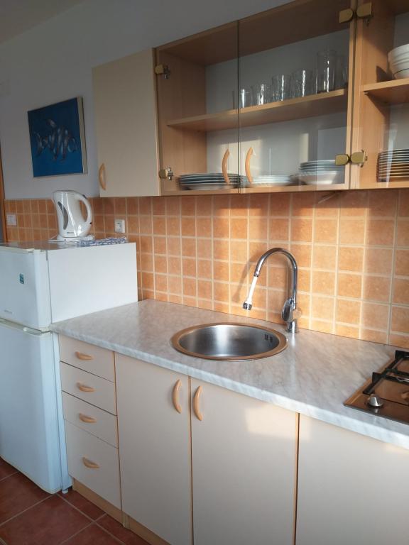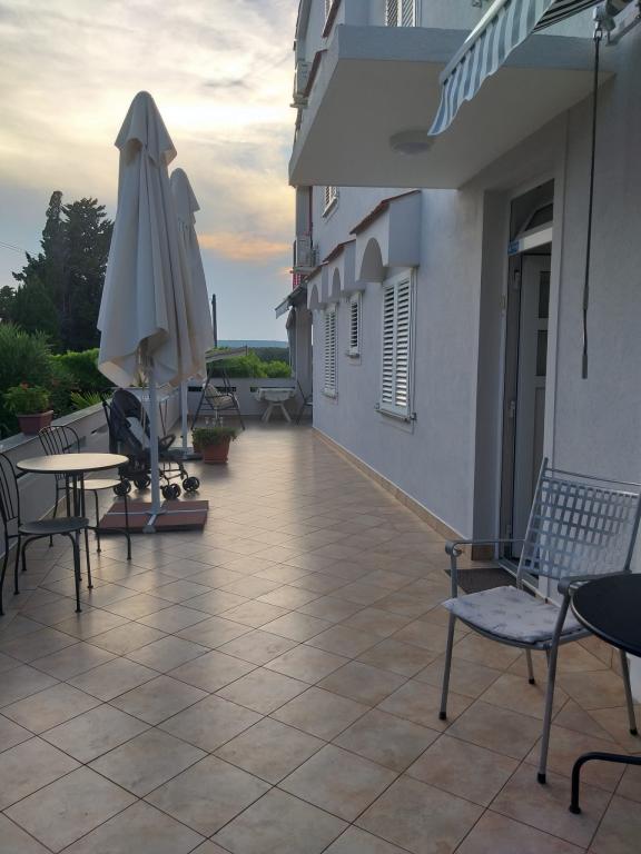 Apartments Ivo, apartments of the Pravica family, category 3***, newly built, modernly equipped, air conditioning, TV/sat. Sea view, two minutes walk from the beach, secured parking space for a car in the yard in the shade, surrounded by greenery. Apartments Ivo offer you accommodation in fully equipped apartments. The large apartment has 2+2 beds located in the bedroom and living room. The apartment also has a kitchen, dining room and bathroom with toilet. Other apartments offer accommodation for 2 people with an extra bed, along with a kitchen and bathroom with toilet. The large apartments have a terrace with a sea view.