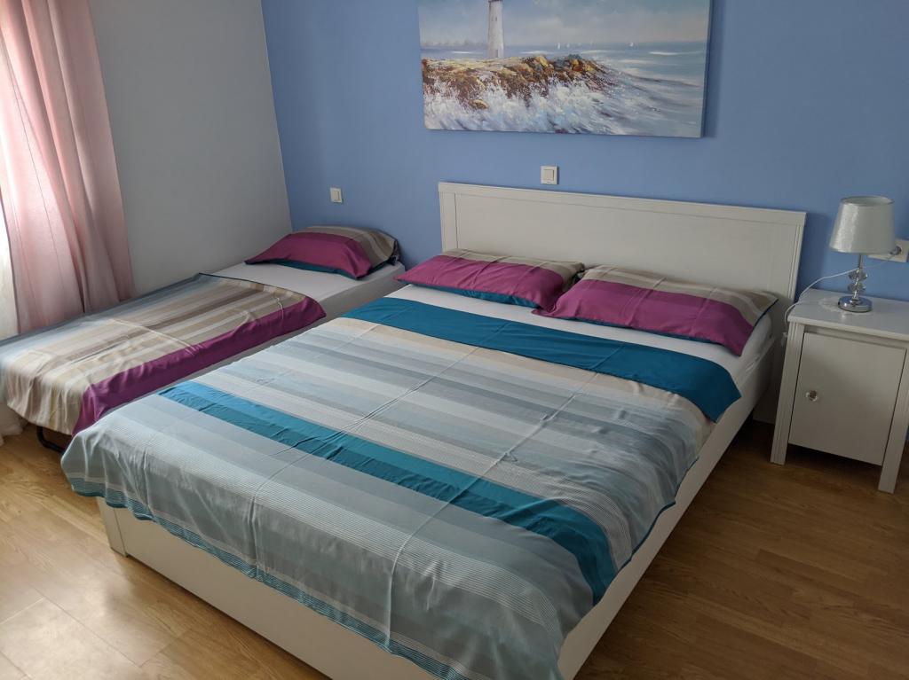 Beautiful apartment. Very large and clean. Modernly equipped. With a large balcony and a beautiful view of the sea and the old town. The hosts are very kind. Everything is nearby, for a few minutes there is a sandy beach, market, cafe. The old town is close by. I recommend to everyone! We will definitely be back next summer!