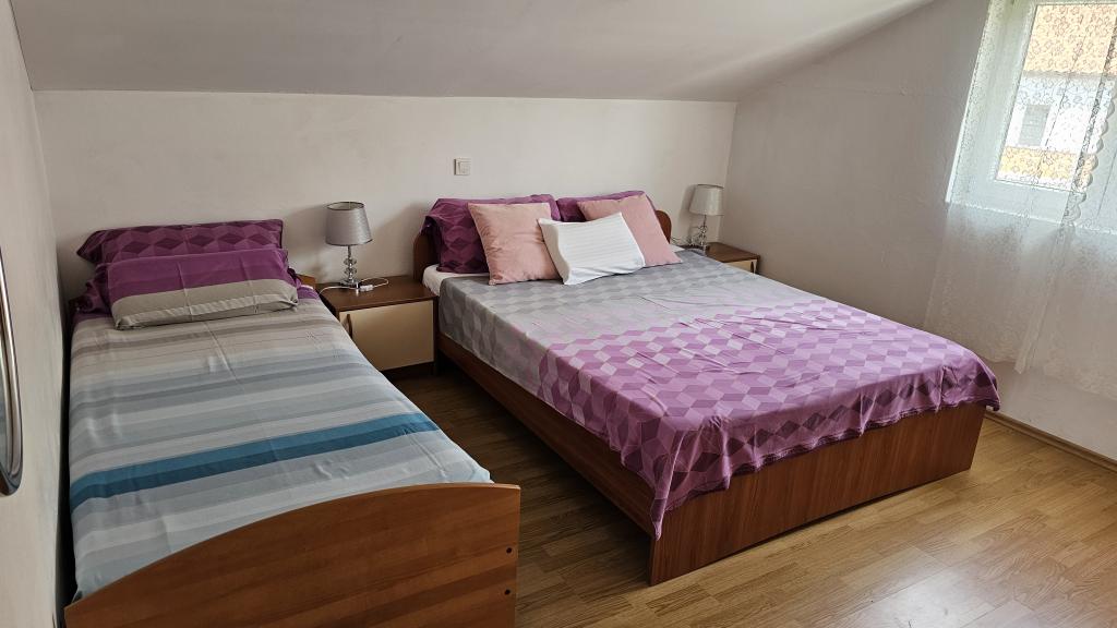 The host (Franjo and Maria) are the two kindest people you can meet. I can’t stress enough how friendly and helpful they are. They did everything they could to make us welcome, even delivering us wine, chocolate and a few basic things for our arrival. The apartment is immaculately clean and nicely decorated and offers a very good price for money. It contains a very comfortable bed and the view from the terrace is beautiful of the sea and the old town. The location is great, close to the sandy beach and the old town. Excellent communication from the owner from start to finish. I recommend this apartment for a relaxing holiday.