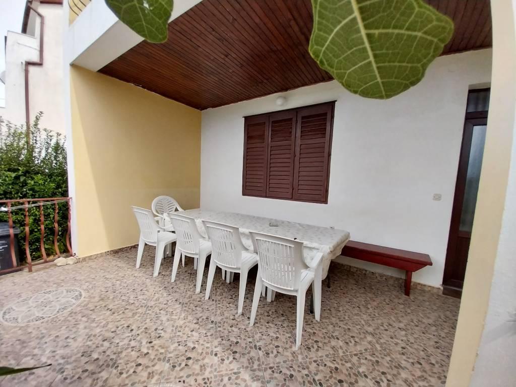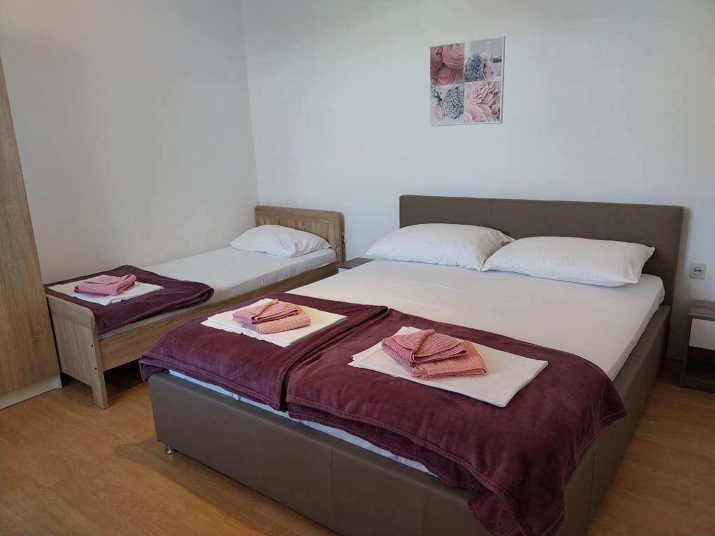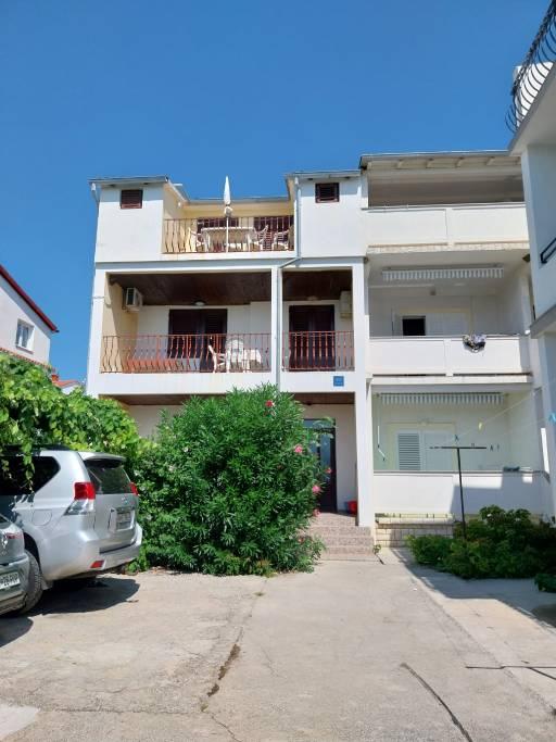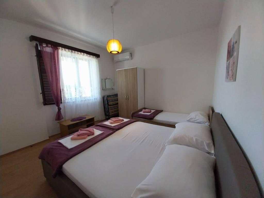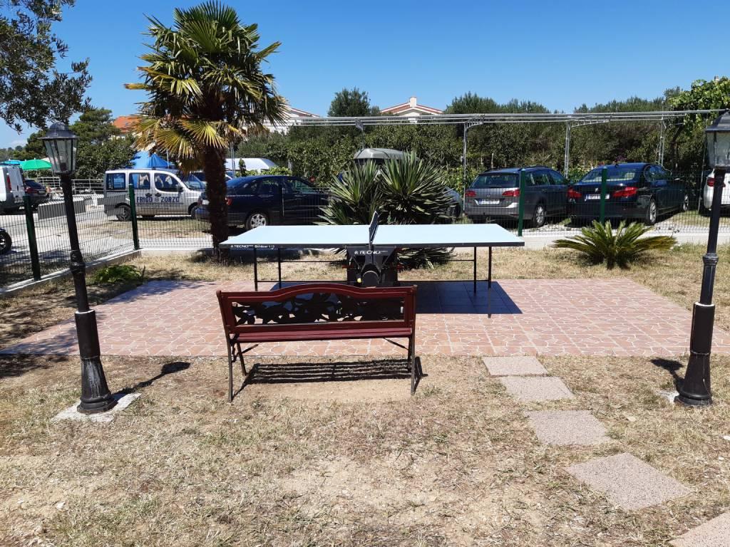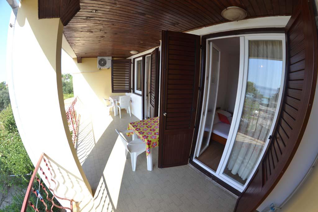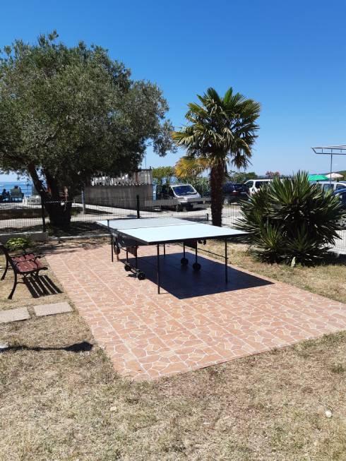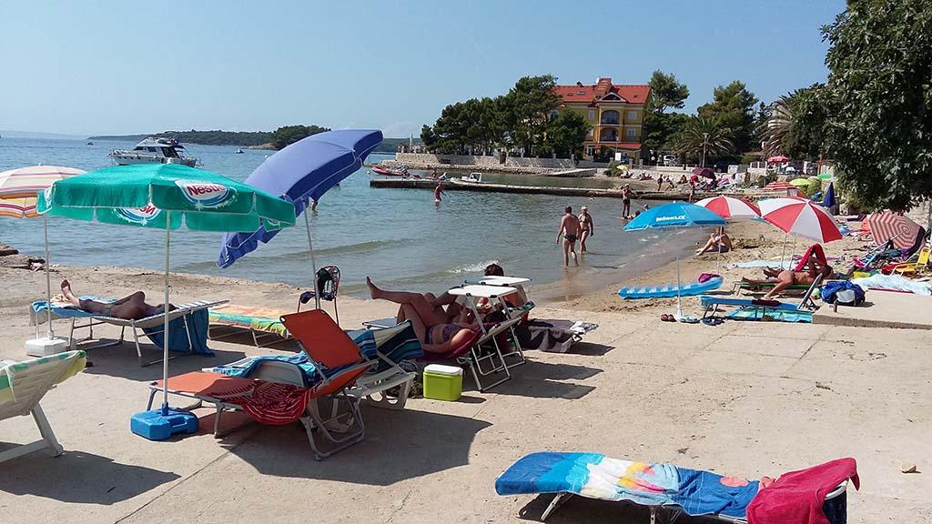 We are located near the Padova III bay on the island of Rab. We offer our guests accommodation in apartments located in a house about ten meters from the sea. Above the sandy beach there is our private terrace with sun loungers, and from the balconies of all apartments there is a beautiful view of the sea. In the courtyard under the olive trees, guests have at their disposal a large barbecue and dining table, as well as swings and a slide for children, as well as a table tennis table. We look forward to your arrival and wish you a pleasant stay.