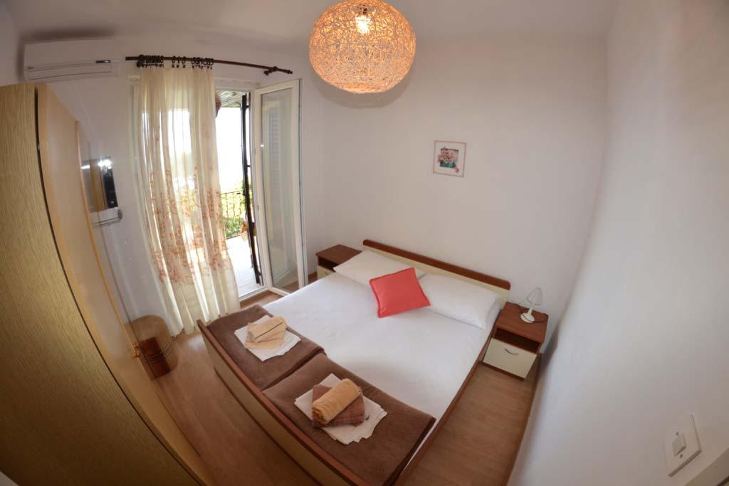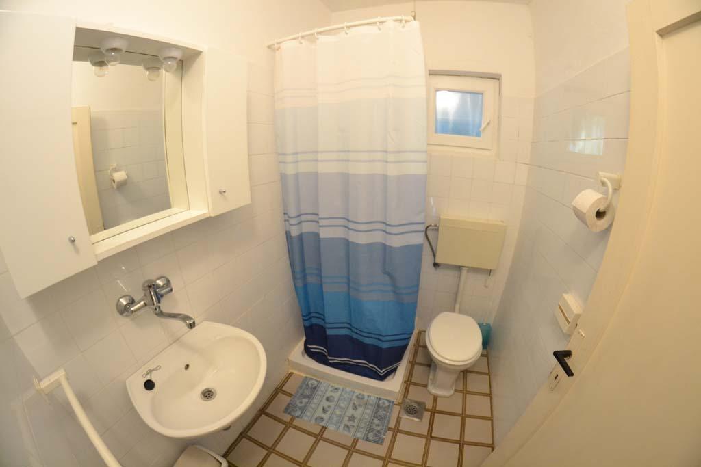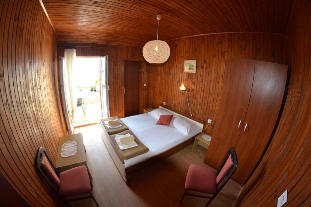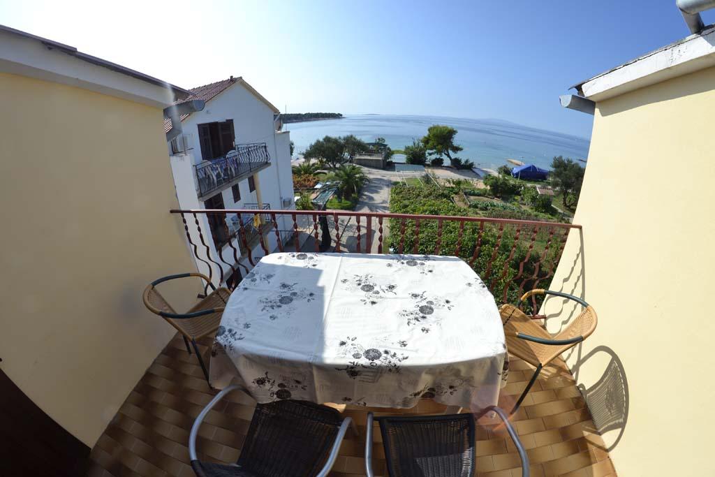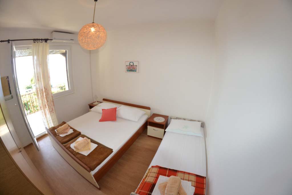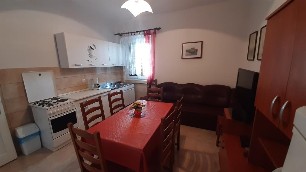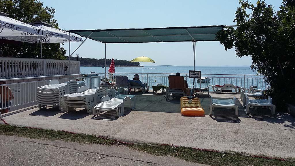 We are located near the Padova III bay on the island of Rab. We offer our guests accommodation in apartments located in a house about ten meters from the sea. Above the sandy beach there is our private terrace with sun loungers, and from the balconies of all apartments there is a beautiful view of the sea. In the courtyard under the olive trees, guests have at their disposal a large barbecue and dining table, as well as swings and a slide for children, as well as a table tennis table. We look forward to your arrival and wish you a pleasant stay.