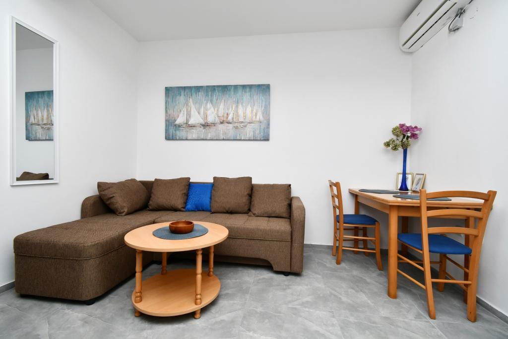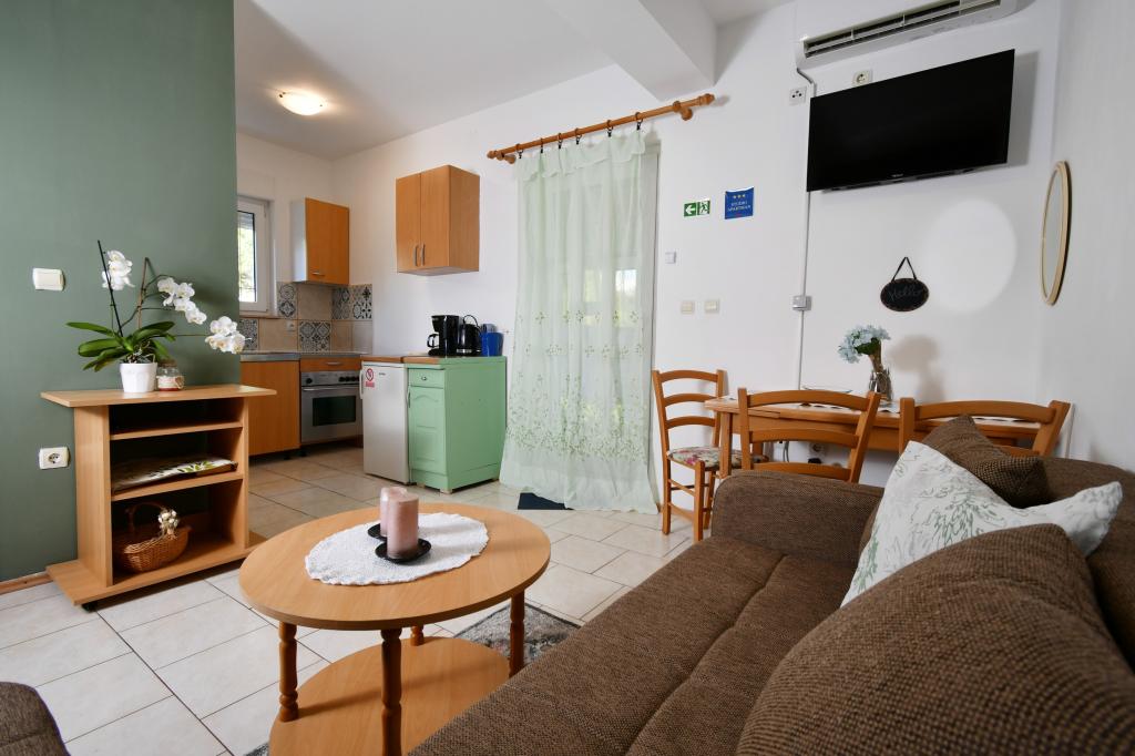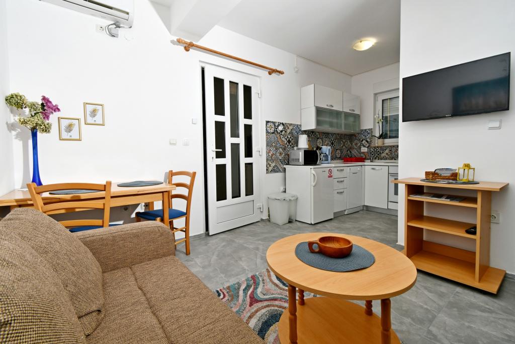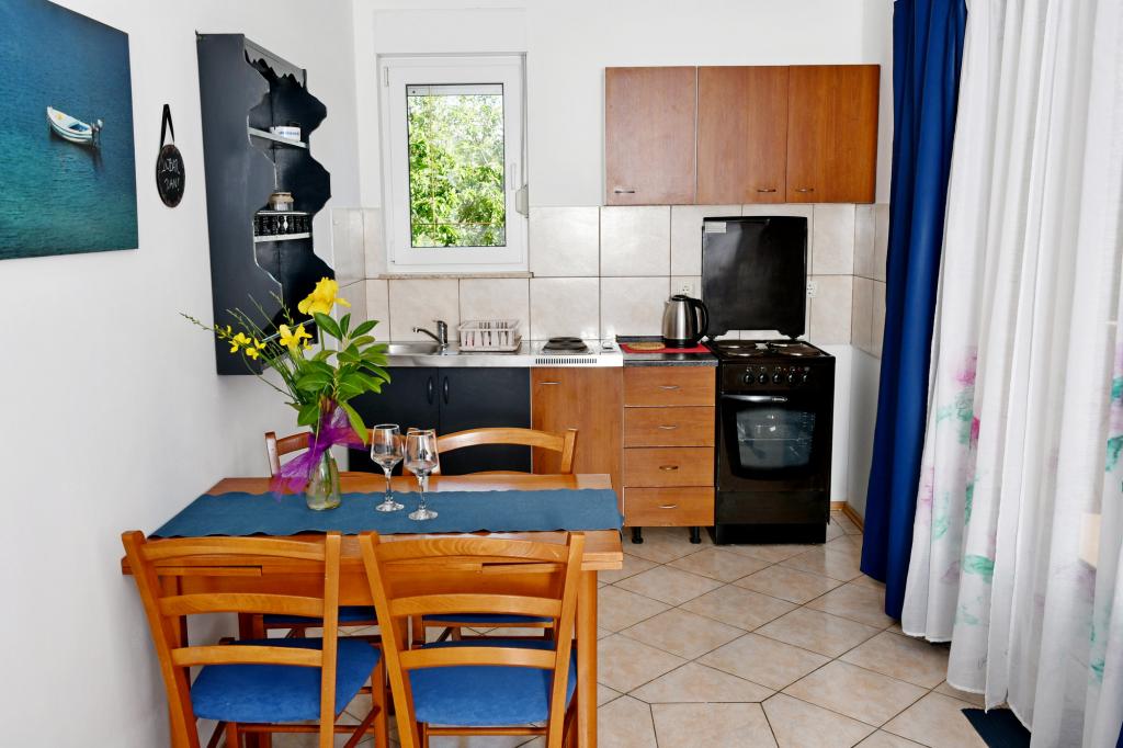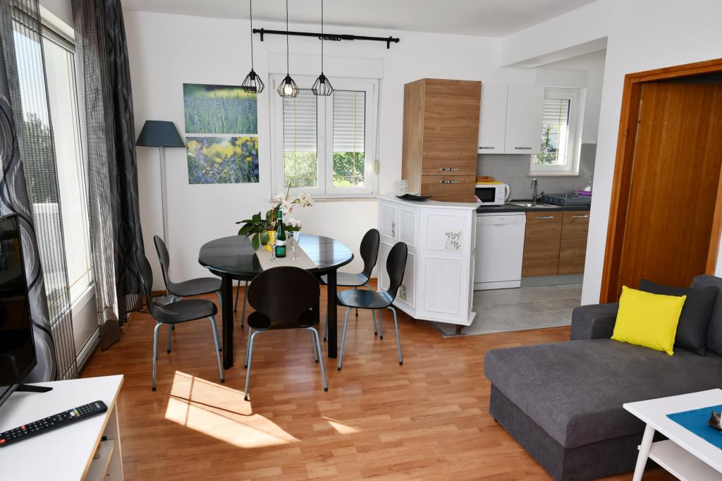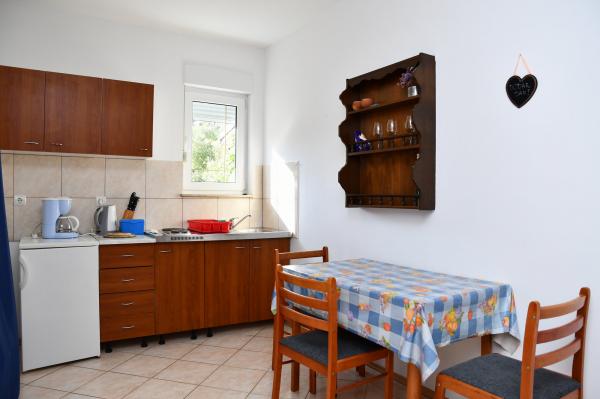 Completely and modernly equipped apartments in the quiet area of Banjol on the island of Rab. The facility is located a 5 minute walk from the beach, 15 minutes walk to the city center, own parking space, use of the grill, free internet.