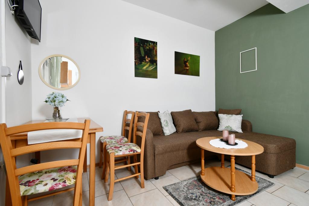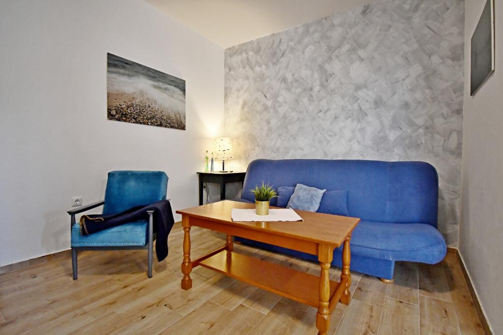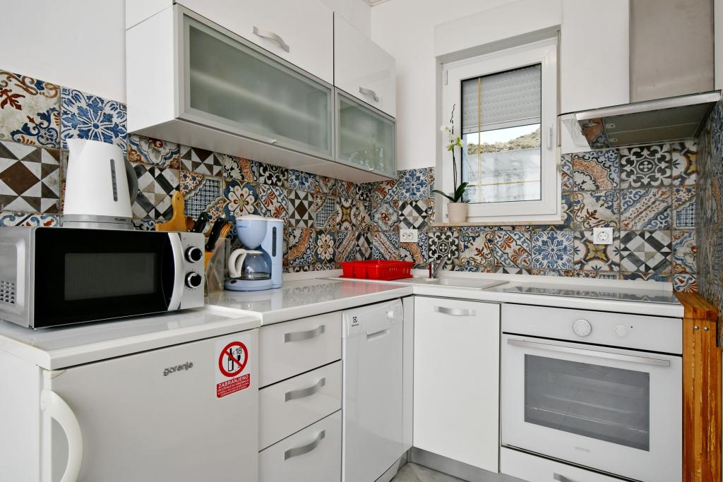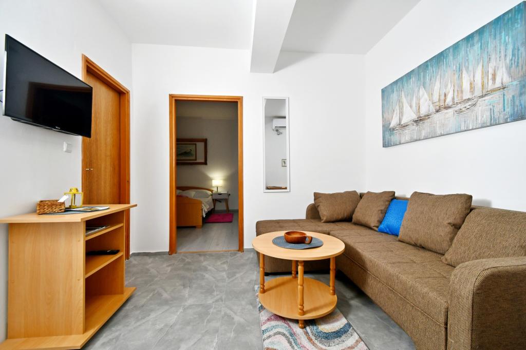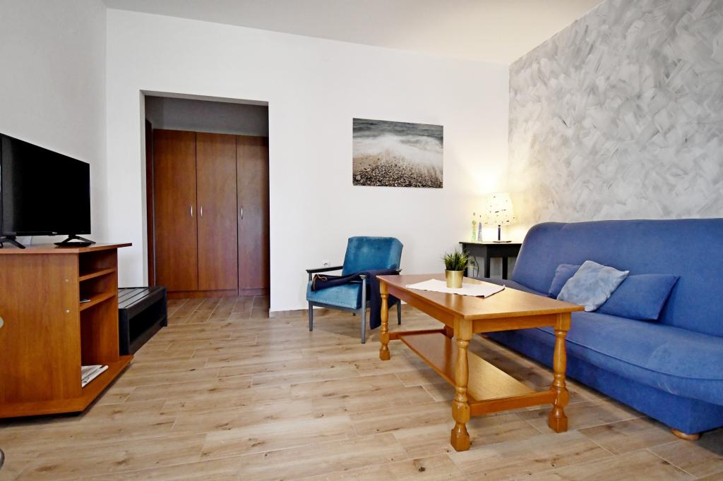 Completely and modernly equipped apartments in the quiet area of Banjol on the island of Rab. The facility is located a 5 minute walk from the beach, 15 minutes walk to the city center, own parking space, use of the grill, free internet.