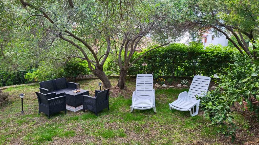 Apartments Padova 2 are located on a quiet part of the island near Padova II beach, surrounded by a garden and greenery of decorative plants. They are equipped with everything necessary for a pleasant and carefree vacation; dishwasher, washing machine, microwave, kettle, toaster, satellite programs, WIFI... The apartments are located on the ground floor, have a terrace and a garden suitable for relaxing in the shade of olive trees. There is a grill on the terrace, which is available to guests. The beach is 50 meters away, and the old town of Rab can be reached in 20 minutes along the beautiful sea promenade. There is a taxi boat in the immediate vicinity for those who like boat rides. Parking is next to the apartments and is free.