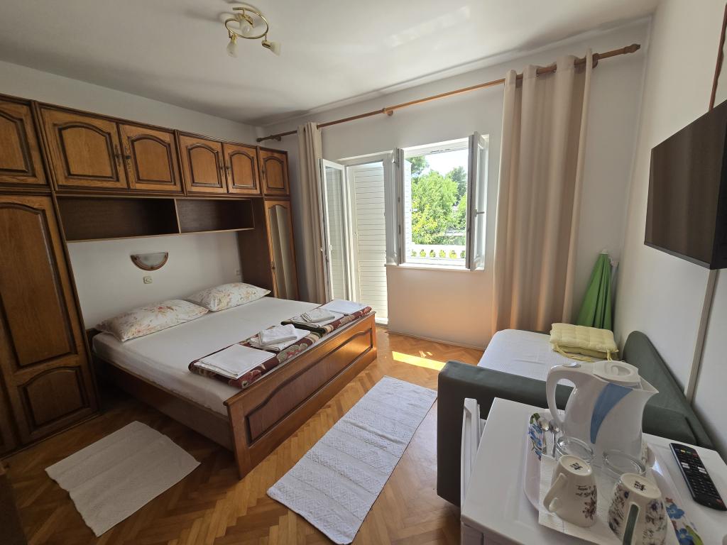 The building is a family house with a large garden, large garden covered with greenery and flowers. We have a long tradition of tourism. The house is located 5min walk to the sea where there is a large sandy beach. The beach is a shop, restaurant, tobacco shop, hairdresser, fitness and other facilities. The town center has a 20-minute walk along the coast, as well as the possibility of a taxi boat.