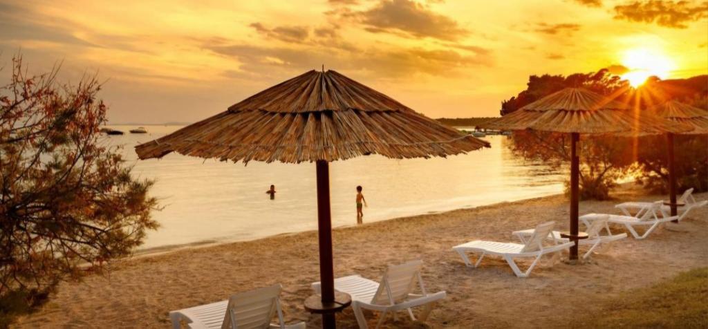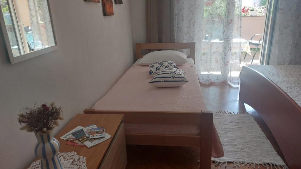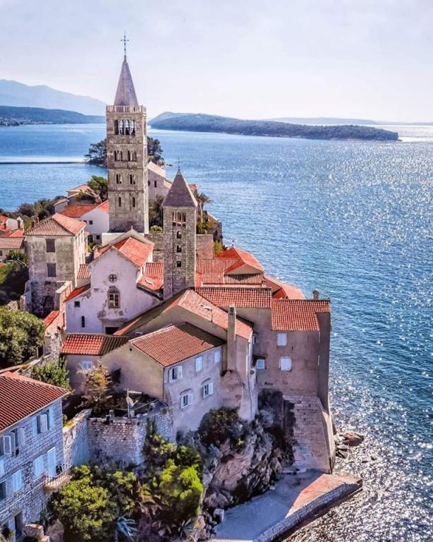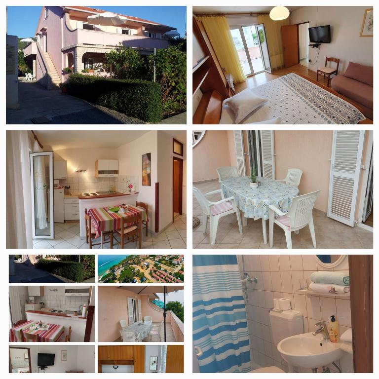 We rent fully equipped and air-conditioned apartments (for 2-5 people) + SAT/LCD TV, each with its own terrace or balcony + parking space in the yard and high-speed internet. We also offer air-conditioned rooms for 2-3 people, each with its own terrace, toilet/toilet, and the possibility of using a fully equipped kitchen, dining room (SAT/LCDTV) and pleasant outdoor terrace with garden furniture. We are located near a beautiful sandy-pebble beach (200-250m) and all other facilities necessary for a carefree and pleasant summer vacation (shops, restaurants, pizzerias, beach bars and coffee bars, recreational facilities, programs for children...). From the old town center of the island of Rab with its rich history, we are only 20 minutes away on foot along a beautiful promenade by the sea.