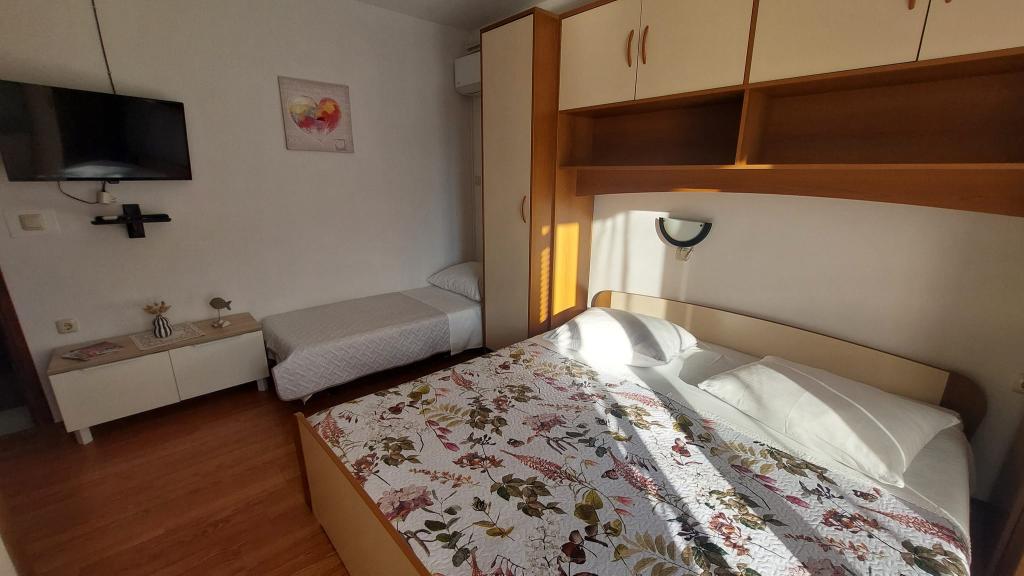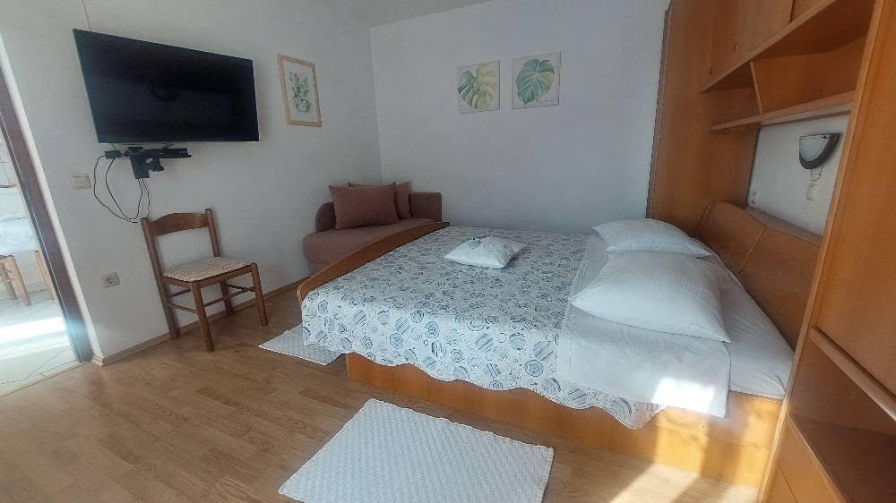 Everything is perfect! Apartment neat, small balcony great for 2 people. Parking in the shade. Shop and bakery 2 min walk. Mrs. Sanja and her mother, very kind, we got homemade tomatoes and peppers on 2 occasions. To the center some 20-30 min walk. I recommend a walk to get there, and back by boat for about 15 kuna per person to Marina 3 and from there another 2 minutes walk to the apartment. Absolutely nothing to complain about! Greetings