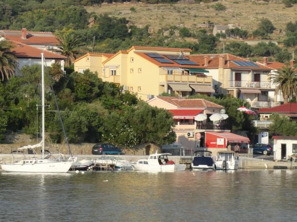Captains Club is situated by the coast, in Banjol, on the island of Rab. We offer the following types of accommodation: 1. Double room with balcony and private bathroom; Studio for 2 people with balcony and private bathroom; Apartment with 2 bedrooms; and apartment with 3 bedrooms. All our rooms are equipped with air conditioning, TV and private bathroom, Wi-Fi and refrigerator. Apartments and Studio are additionally equipped with a kitchen. Near the accommodation there is a small restaurant and cafe With accommodation you can book type of diet. The choice you breakfast or half board or full board. For all owners of boats we have secured a berth for the ship to 9 m in length.