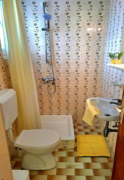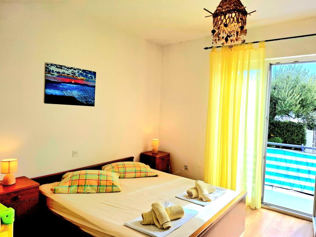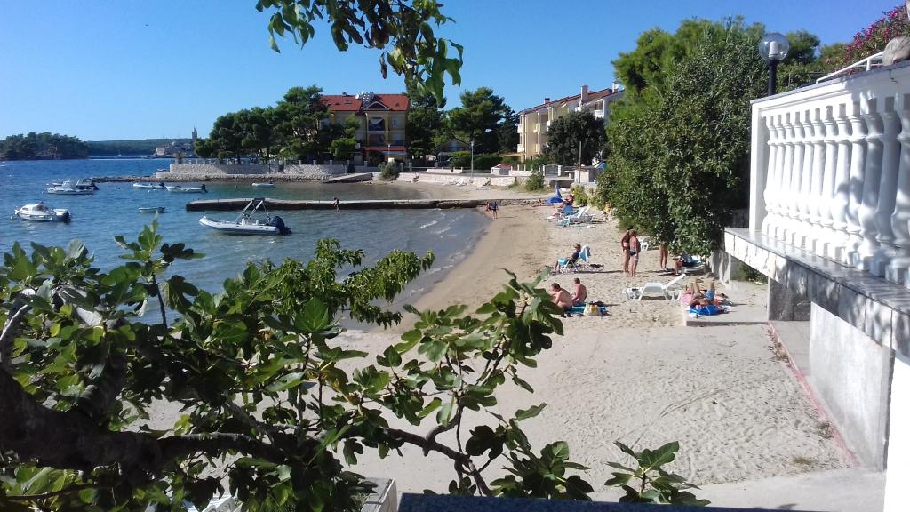 We offer comfortable and airy rooms right on the sea, ideal for travelers looking for affordable accommodation (low-cost) in an excellent location. Each room has its own bathroom and balcony, comfortable beds and a floor fan for a more comfortable stay. The Yellow Room has space for a baby bed (free of charge) and/or an extra bed (for a supplement) and can therefore be a family room. Guests have free parking, a large terrace and a well-equipped common corner for preparing breakfast in the spacious hall. (There is no kitchen). A special asset is our garden in the shade of olive trees with deck chairs and tables - the perfect place to relax with fast Wi-Fi available to all guests. Without TV and without air conditioning, the focus is on an authentic summer holiday. We are located steps from the beaches, promenade and beach bars, which makes us the perfect base for an active holiday at an affordable price. Only 15 minutes walk separates us from the town of Rab.