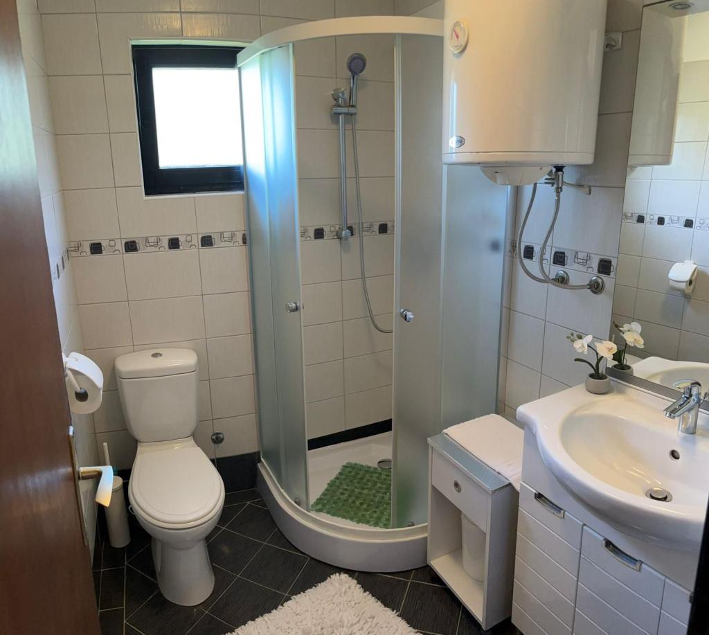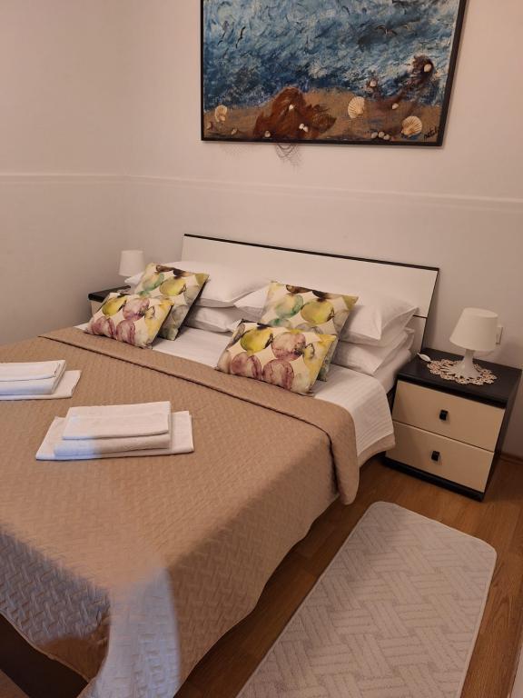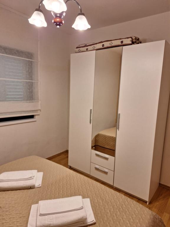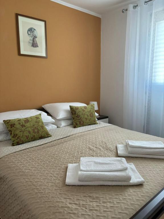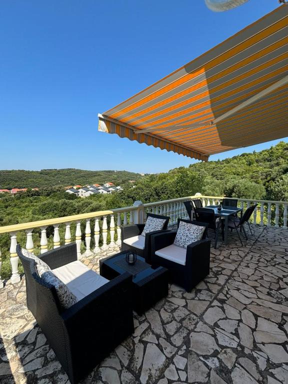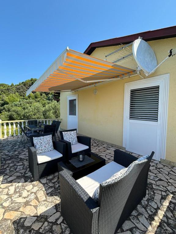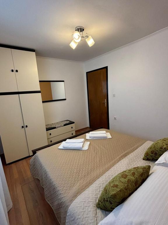I rent 3-room apartments of 55 m2 on the 1st floor of the house and the ground floor of the house. The apartments are fully equipped and contain: Living room and dining room with TV with satellite receiver and air conditioning. Two bedrooms. Each room with 1 double bed (160 cm, length 200 cm), wardrobe and access to the terrace. Kitchen (fridge, 4 hotplates, dishwasher, kettle, electric coffee maker, toaster, microwave) Bathroom with toilet, shower and sink. Large terrace of 35m2 with sea view, lounge furniture and dining table. Pets are not allowed. For shared use: plot of 400 m2 (fenced). Terrace, garden furniture, barbecue. In the house: internet access, washing machine (for shared use, for a surcharge). Parking next to the house on the plot. The apartment is located in a dead end street 800m from the center of Rab, 5 km from the center of Kampor, 15 km from the center of Lopar, 800 m from the sea, 800 m from the beach, 100m from the shop.