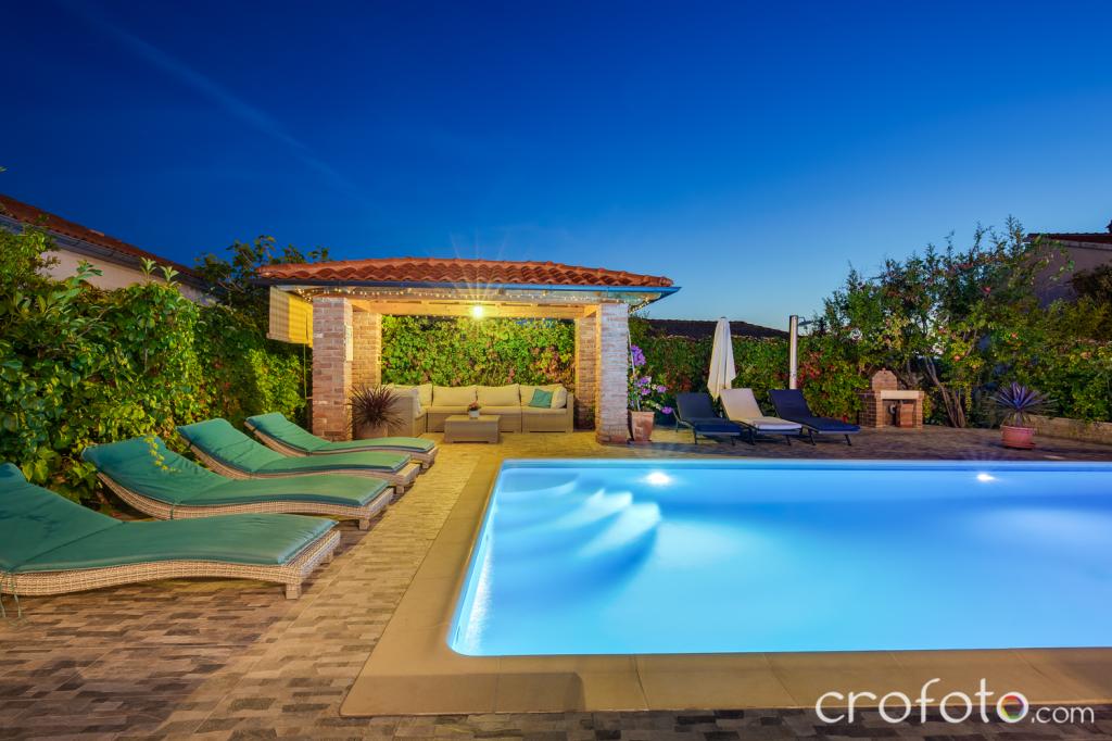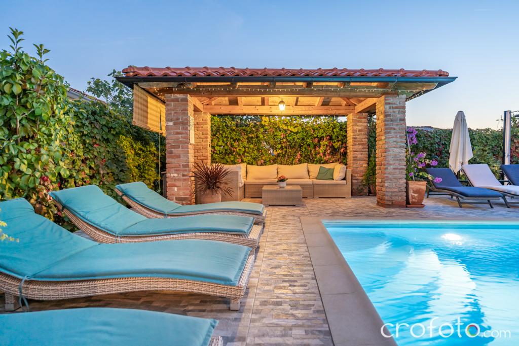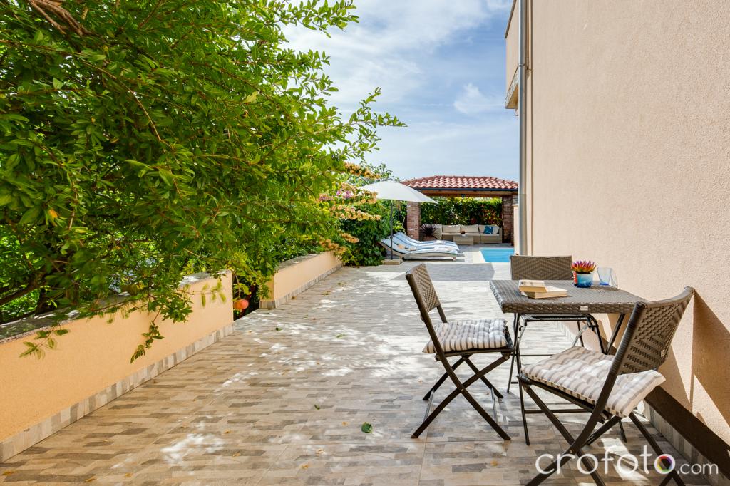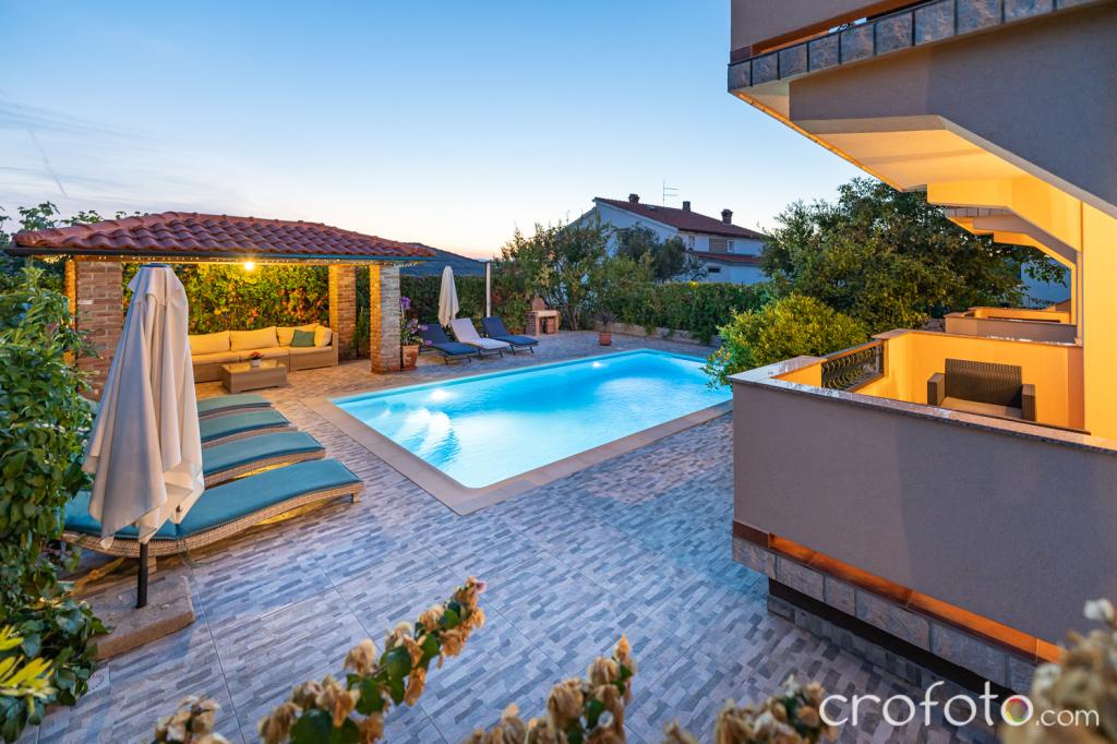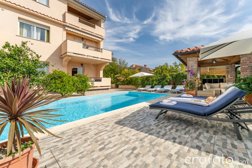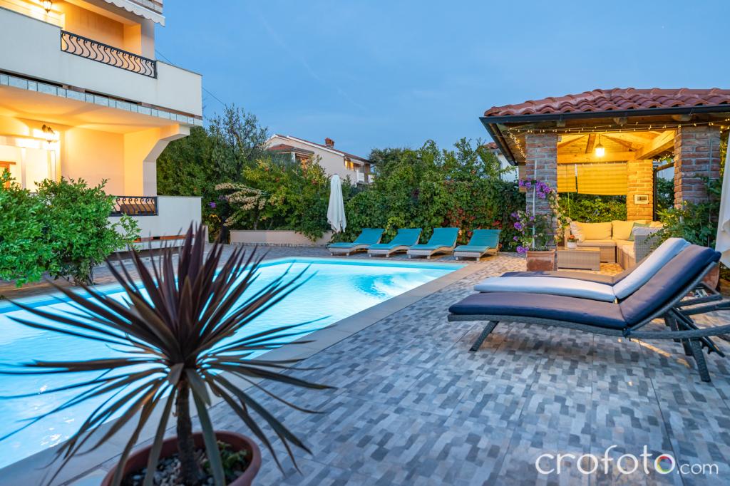 The house APARTMENTS JURIĆ has an excellent location, close to the center and the most eminent restaurants, close to the sea, close to the park. What really wins, far from the crowds, in a quiet location, with its own swimming pool and garden with a separate gazebo with a fireplace and a large table, which we put at the use of our dear guests. Pleasantly designed and furnished area around the pool, with comfortable seating in the shade of a cozy gazebo, comfortable deck chairs, surrounded by tall greenery. In the garden, olive trees, Mediterranean herbs, ornamental plants and flowers give a special atmosphere. The atmosphere is very pleasant, suitable for a quiet holiday and relaxation.