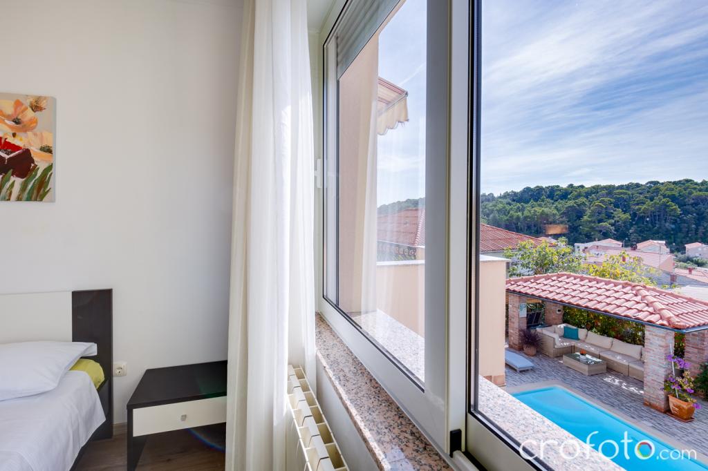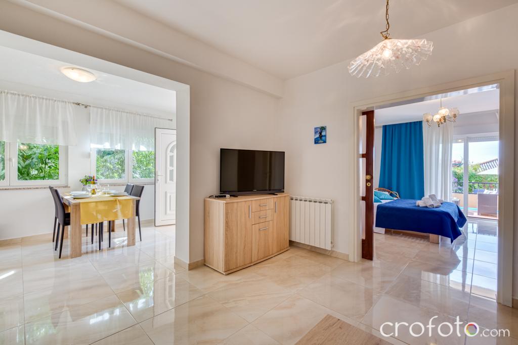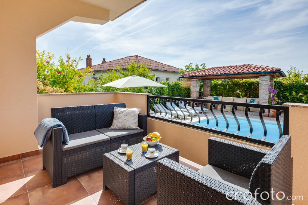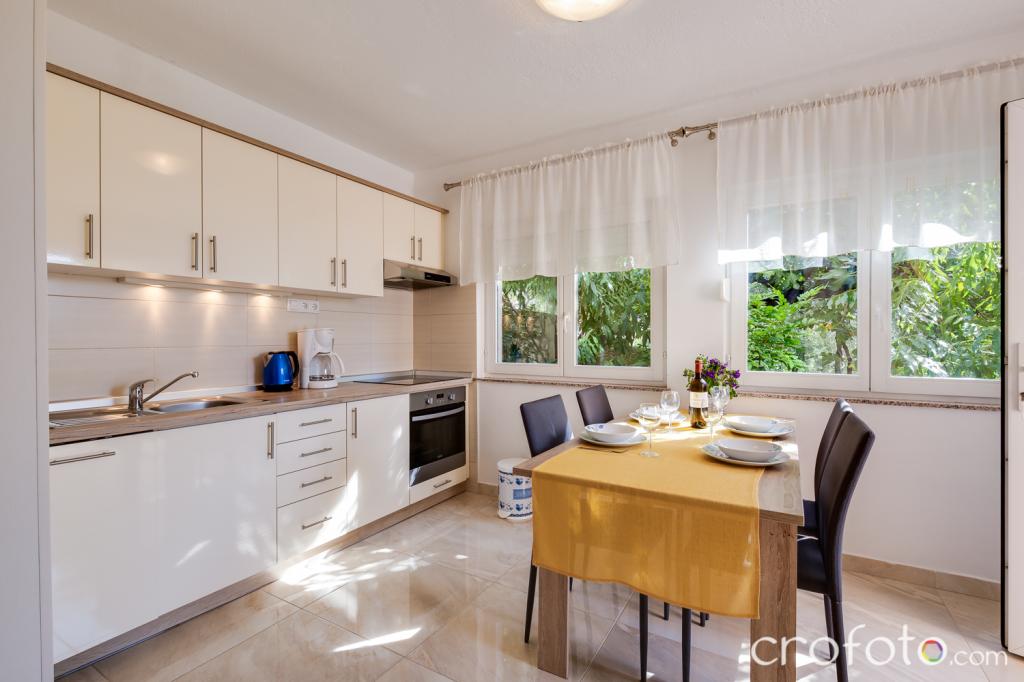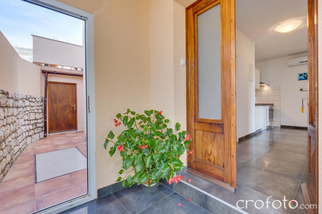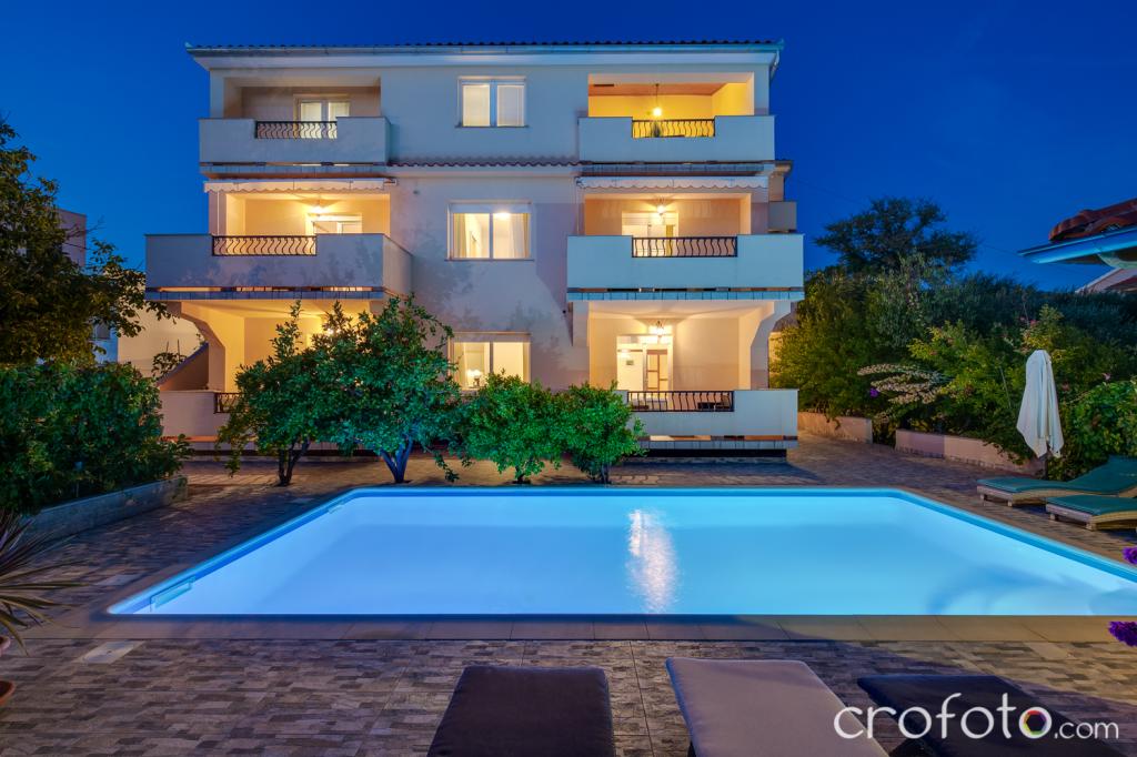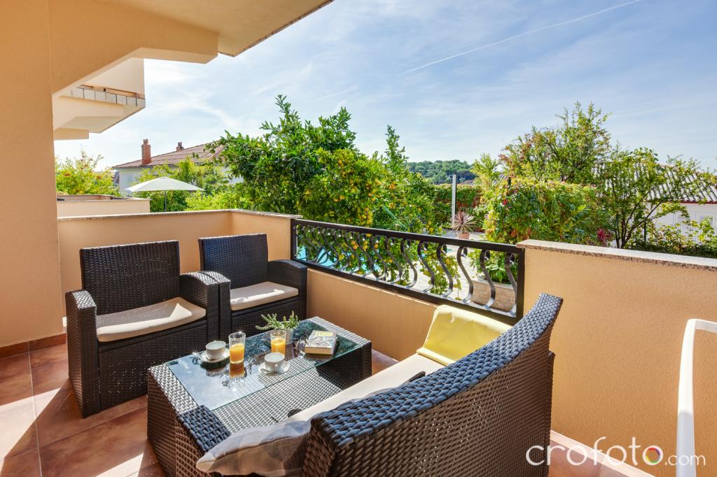 The house APARTMENTS JURIĆ has an excellent location, close to the center and the most eminent restaurants, close to the sea, close to the park. What really wins, far from the crowds, in a quiet location, with its own swimming pool and garden with a separate gazebo with a fireplace and a large table, which we put at the use of our dear guests. Pleasantly designed and furnished area around the pool, with comfortable seating in the shade of a cozy gazebo, comfortable deck chairs, surrounded by tall greenery. In the garden, olive trees, Mediterranean herbs, ornamental plants and flowers give a special atmosphere. The atmosphere is very pleasant, suitable for a quiet holiday and relaxation.