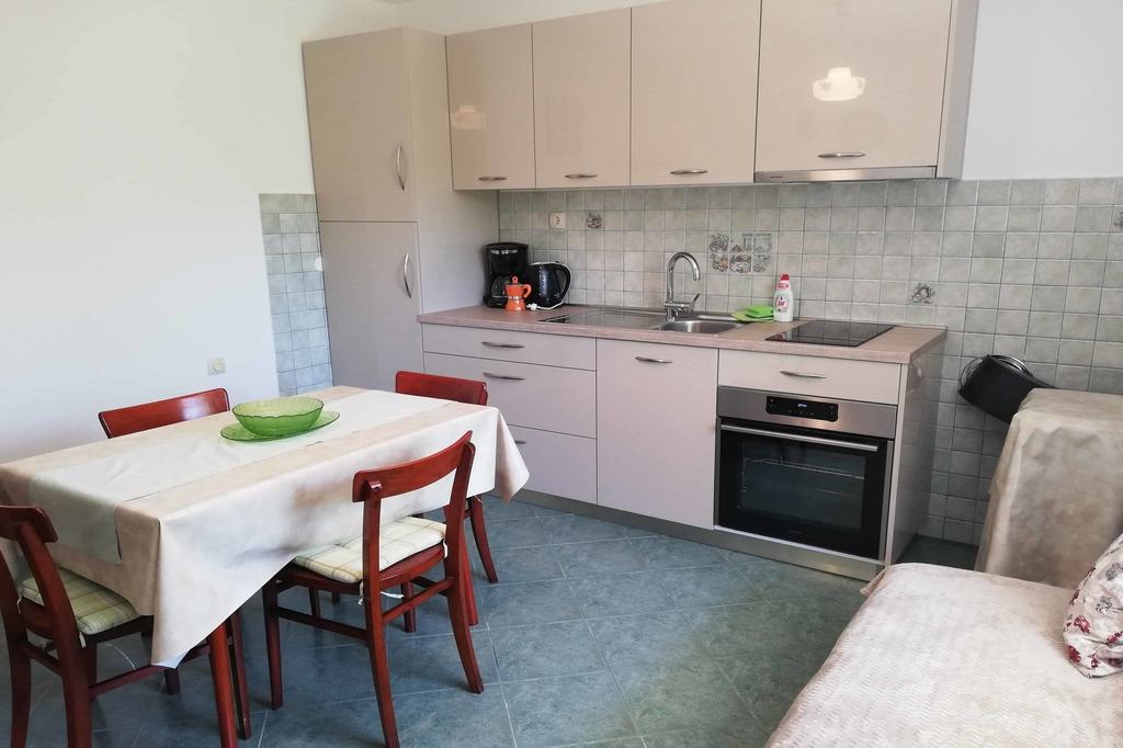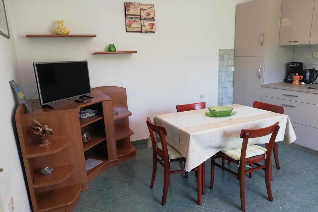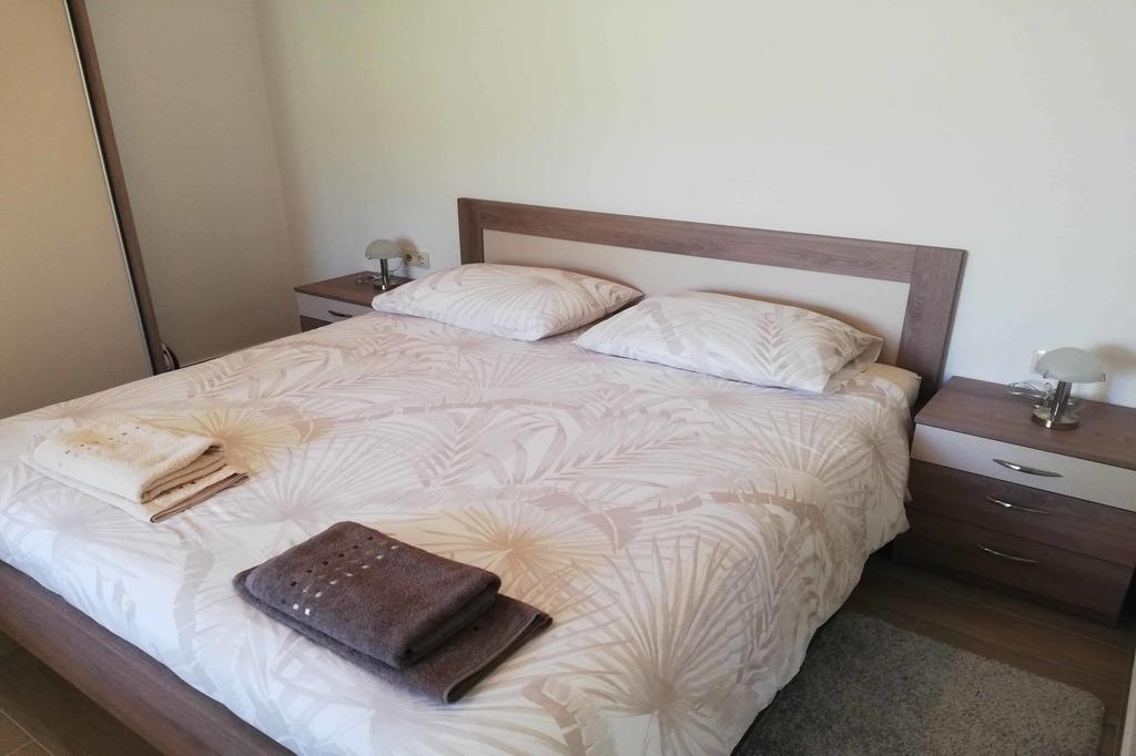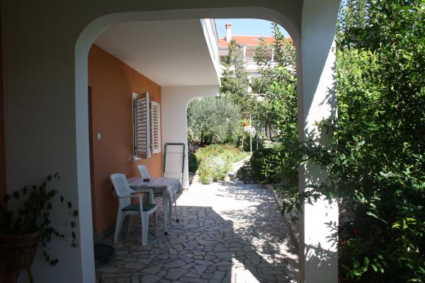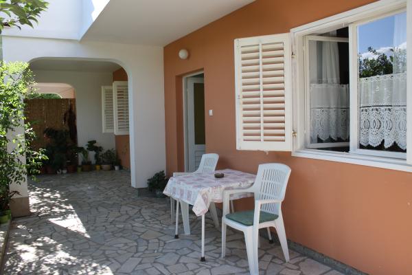 We stayed in a ground floor apartment with one bedroom, the apartment is neat, the terrace is shaded all day with a view of the olive grove. A pleasant apartment, we didn't need air conditioning. The hosts were friendly and approachable, we were welcomed with a homemade Rab cake and since I love figs, my aunt picked them for me. I recommend