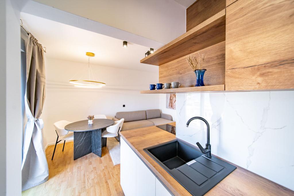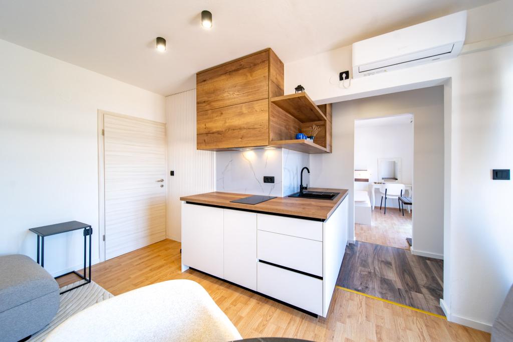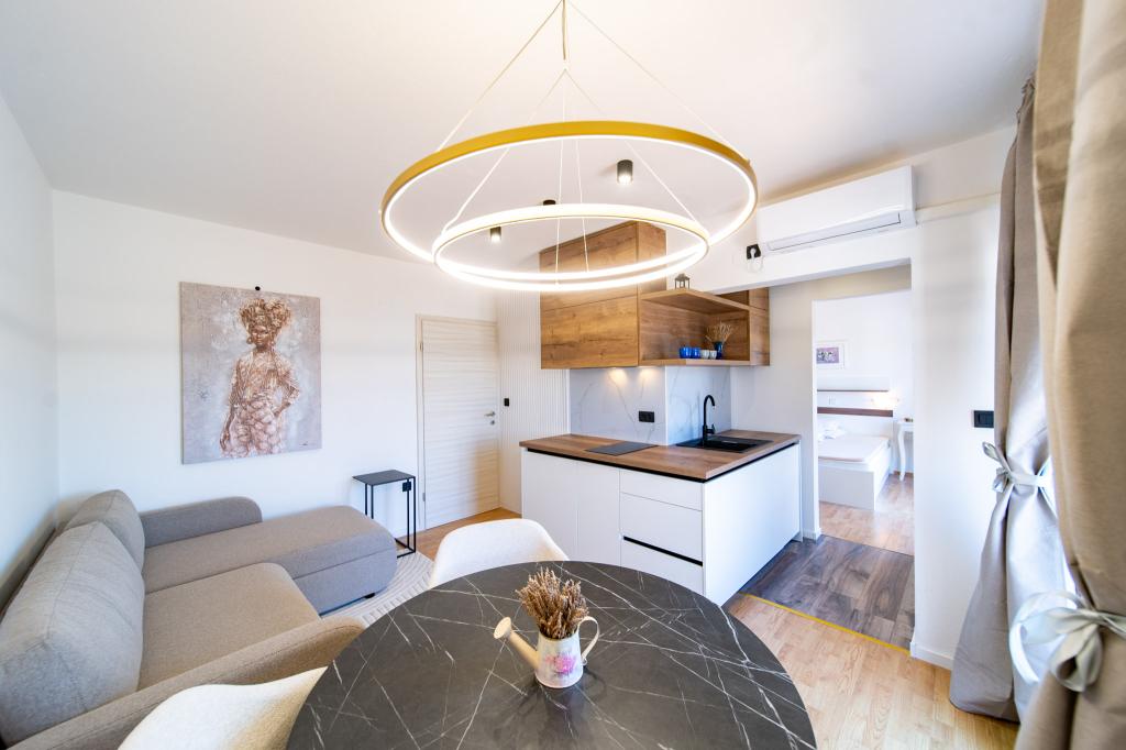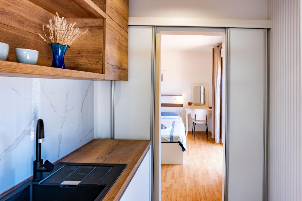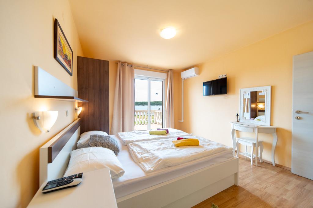The facility is located in a quiet part of the island of Rab, the town of Palit. Since we are located in the first row to the sea, all the units, which are luxurious and fully equipped, offer a beautiful view of the sea and the romantic bay of Frkanj, where you can enjoy magical sunrises and sunsets. The house is located only 50 meters from the beach and 150 meters from the center of Rab, which can be reached by a pleasant walk along the promenade by the sea. Restaurants are also located a few minutes' walk from the building. The building is also decorated with a beautiful garden with a garden, where you will enjoy the Mediterranean scents as you pass by the sea.