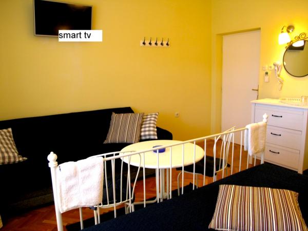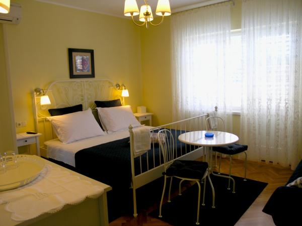 The property Rozi House is 500 m from the center of Rab and 300 meters from the sea. It includes rooms with a private balcony and bathroom, and an apartment 2 1. Guests staying in rooms (4 rooms) with a shared kitchen and denevni stay. It is available free Wi-Fi. Within the house are free parking. The nearest restaurant is only 50 meters, and the fruit and vegetable market and fish market are located at 200 meters. The bus stop is located 300 meters from the hotel House Rozi. The location is ideal because of the proximity to the center (old town of Rab and beach), and yet in a quiet location. We also have a mooring for boats.