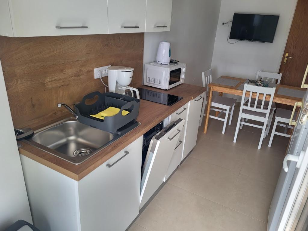 Very quiet and comfortable accommodation. The owner is a very pleasant and helpful lady. The apartment is clean, nicely furnished and fully equipped. It is a short walk to the beach, so you can go straight in your swimsuit. The shop is about 5-10 minutes walk, right below the apartment there are two restaurants, one at local prices, the other more luxurious. Parking is a bit more complicated, but no problem. We would be happy to come back here again.