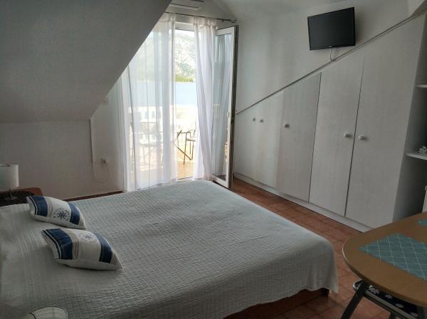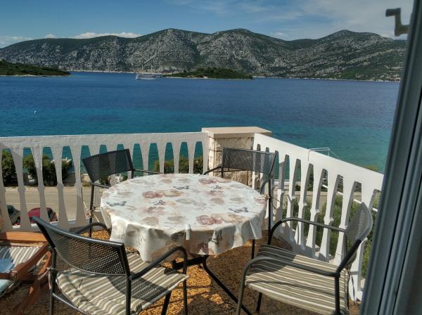 We offer you 2 studio apartments 10 meters from the sea. Apartments \Willy\ are located in small vilage Kneže near Račišće, 9 km away from Korčula town center. Apartments are well furnished, air conditioned with a wonderful seaview... Comfortable accommodation at the disposal: two studio-apartments, both of them well equipped, two bathrooms, toilets and kitchens. The apartments are ideal for a family or a group of friends who would like to enjoy their stay. A grill and parking places for 4 cars (free of charge). In a shade of mediterranean plants and the vicinity of a crystal-clean seawater there is a private beach and a jetty for boats (free of charge), showers and washing conditions for windsurfing equipment as it is also an excellent windsurfing area. A shop and restaurants are very near....