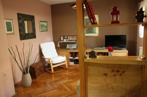 Located in a house, surrounded by beautiful nature and mountain scenery, Eva Apartment consists of bedroom and living room, kitchen and bathroom. You will feel very welcome, but the driveway that it looks like a fairy-tale park. The rear part of the house will surprise you with a beautiful view of nature and the orchard where you can comfortably sit and enjoy or to walk and run. Picked apples, pears, plums or quince, from orchards where natural breeding, will delight every foodie. Dell hiding behind the house and a barbecue area where you can sit on a bench and enjoy the fine fragrances bring along.