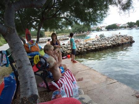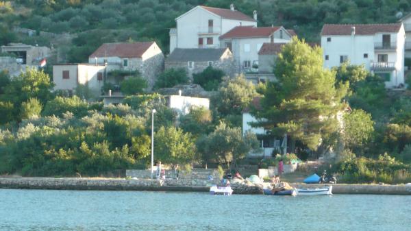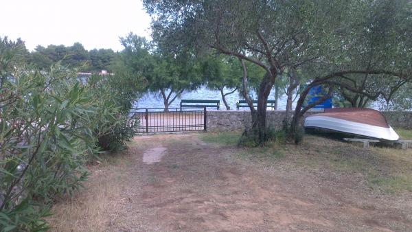 The apartment is located in a quiet area Rasline. Shady Beach is 20 meters away. House and apartment is surrounded by stone walls. Planted with olive trees, oleander and ornamental plants. Inside the fence the parking lot. The center is approx 8 min walk, and there are restaurants and shops and other public beaches.