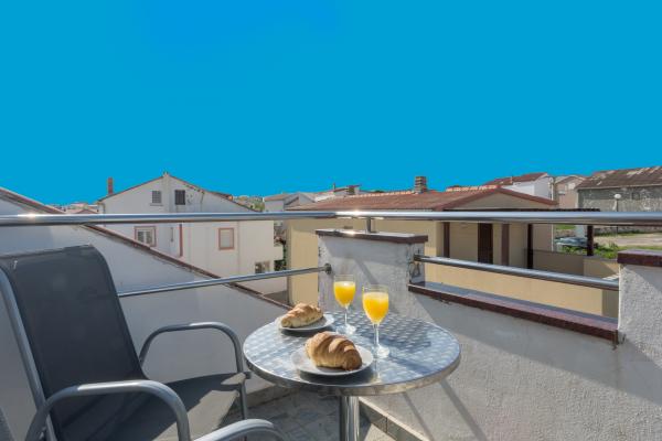The room on the first floor leads to a small balcony with a view of the place, and in front of the family house is a large terrace that is shared with another apartment. The terrace is equipped with furniture and offers a wonderful view of the sea and Velebit. Provided: towels, bed linen, 2 air conditioners, parking, wifi, washing machine, toaster, microwave, kettle, cot and feeder on request.
