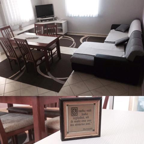 Apartment very clean house and yard all very neat, nice owners welcomed us in a nice gift in the refrigerator (rakija, water, juice). The apartment does not lack anything, beautiful view from the terrace of the sea and the mountains.