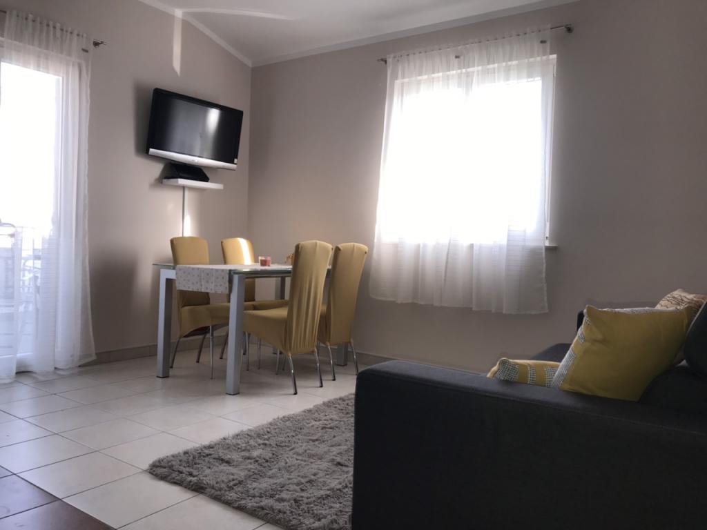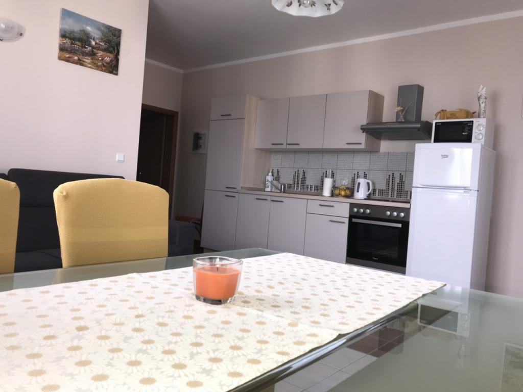 Completely and modernly equipped apartment, in the beautiful Podveleem place Ražanac, which is characterized by clean sea, beautiful beaches and a pleasant place to stay. Ražanac is located 20km northwest of Zadar and within an hour or less there are 4 national parks - Krka (70km), Plitvice Lakes (100km), Paklenica (15km) and Kornati (35km) as well as rafting on the river Zrmanji (25 km). The facility is a 10 minute walk to the center and to the beach. The apartment is designed for 4 persons and consists of a kitchen, dining room, living room where there is an extra bed suitable for children or a couple, a spacious bedroom with a large double bed, a bathroom and a wonderful balcony with a sea view. On request, in the bedroom it is possible to ask for a child kindergarten free of charge. Around the house is a beautiful green yard that you can use for playing, relaxing, or for barbecues.