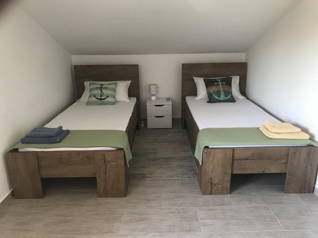 We were thrilled with the apartment. Modern and very comfortable. True to the pictures. All rooms, except the bathroom, have air conditioning, which was a relief in the summer temperatures every time we came back from the sea and turned it on. The bedrooms are equipped with shutters. The sea is quickly reached via a small path. However, for families with children and lots of beach gear, I recommend a handcart. The hostess Silvija is very friendly and available at any time. There was even a small gift waiting for us upon arrival. We will be happy to come back.