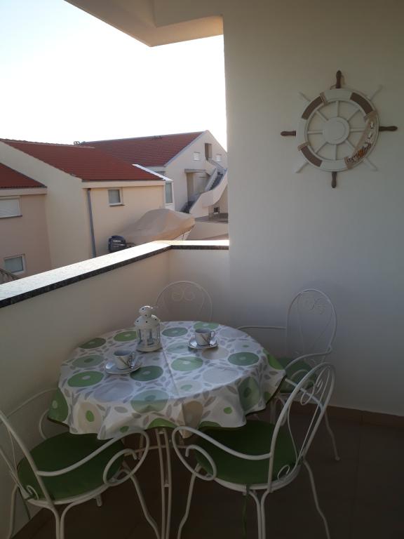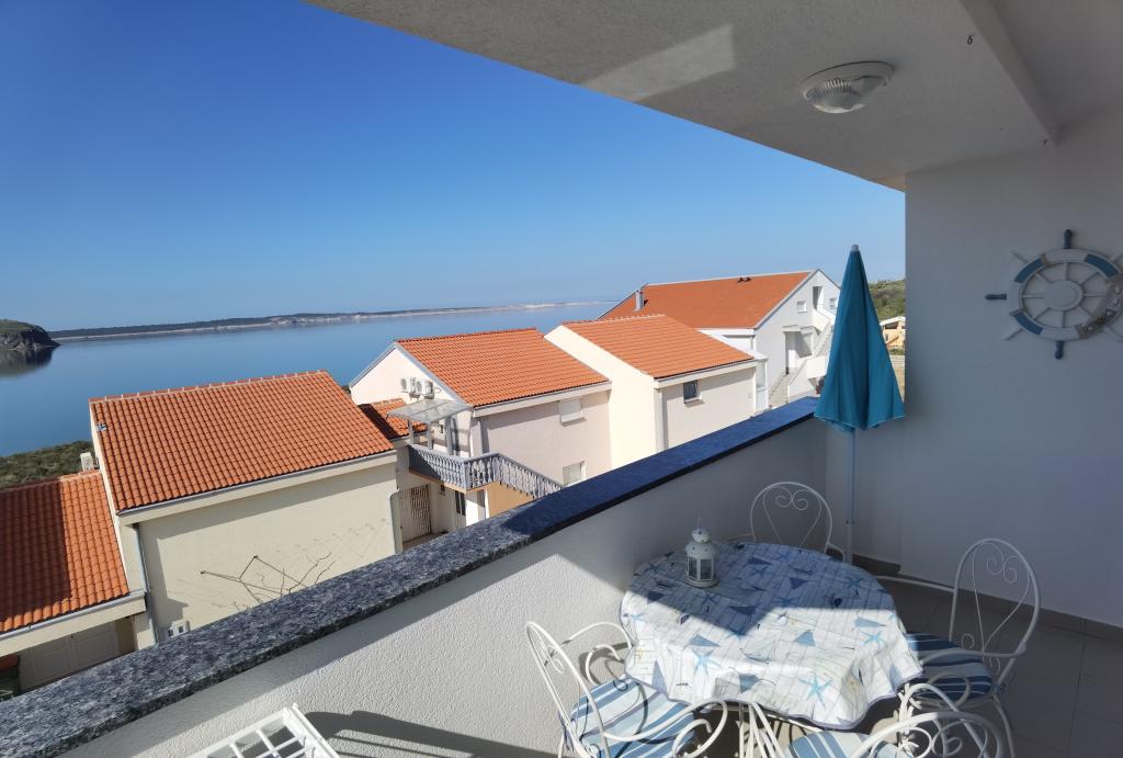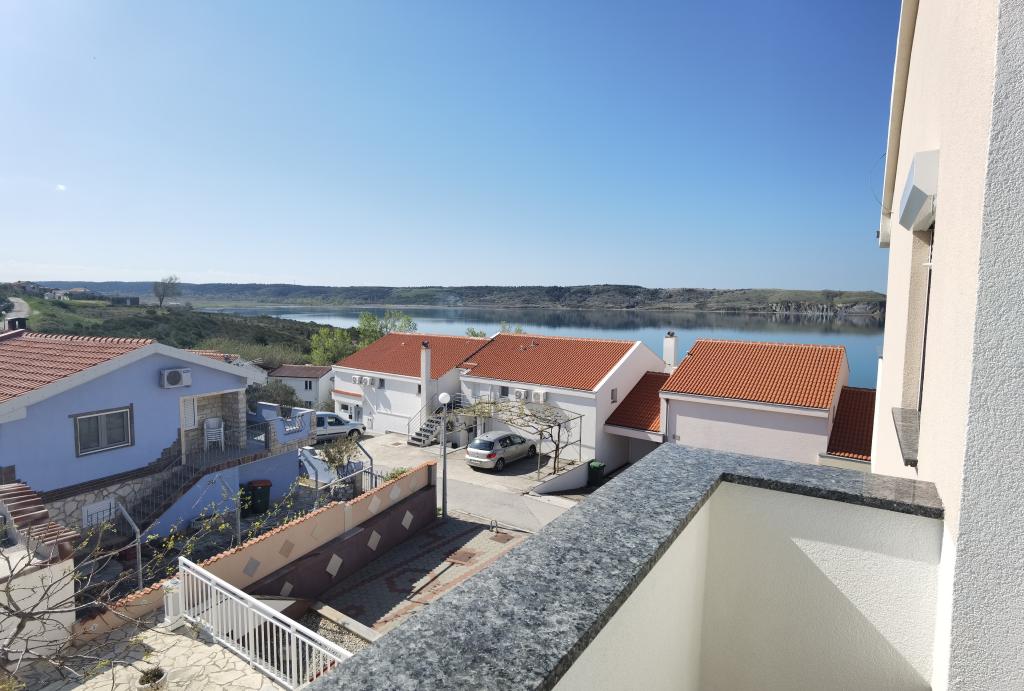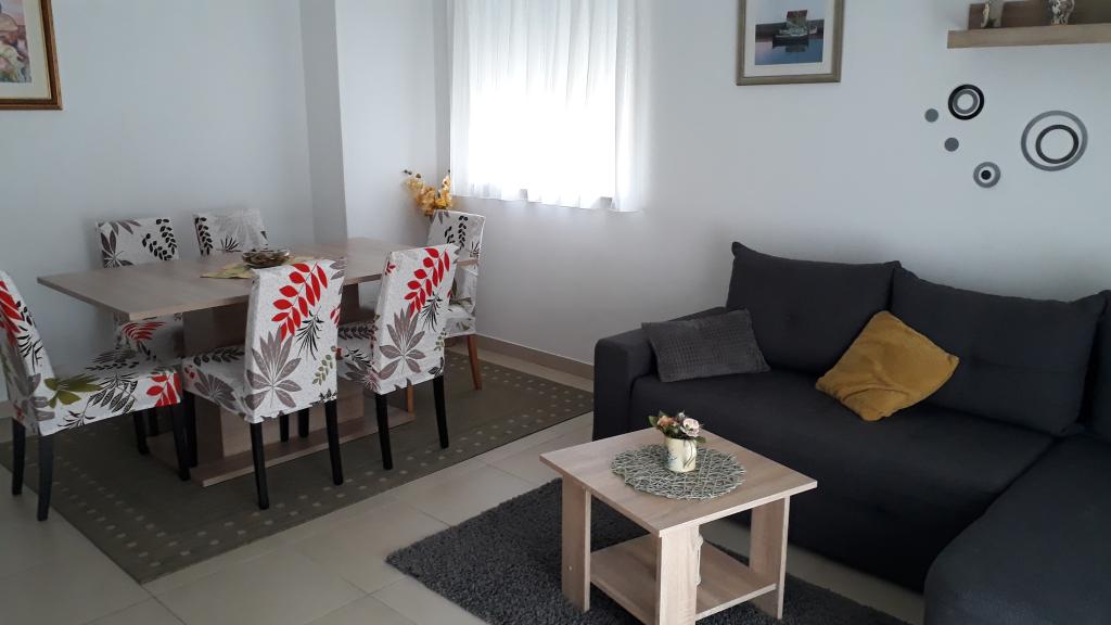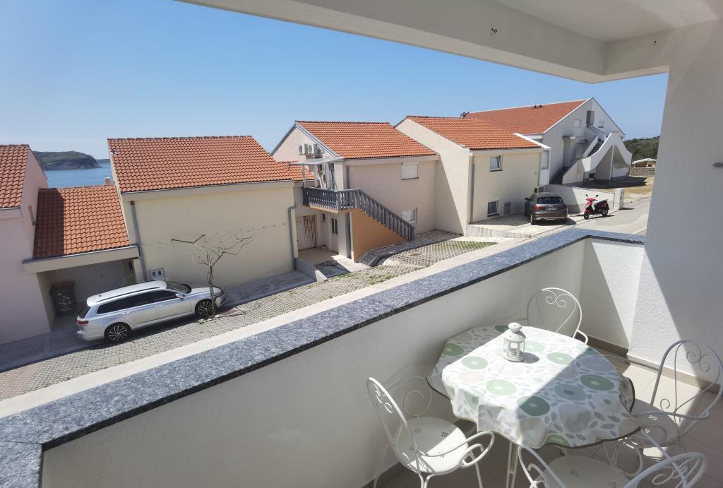 Rtina Miočići is a small place only 20 km away from Zadar towards Pag and 3 km from Pag bridge. It is located in a quiet bay with warm and clean sea and sandy beaches and a sandy seabed, ideal for vacation, and the hustle and bustle of Zadar and Pag can be reached quickly. The sea is shallow and suitable for children and non-swimmers. Apartment (a) is located on the 1st floor, apartment (b) on the upper ground floor. Both are for 4+2 people. Distance from the beach 100 m. The apartments are new and superbly equipped. They have 2 bedrooms with double beds, a living room with a sofa bed (as an extra bed for 2 more people), a dining room with a table and 6 chairs, a kitchen equipped with a refrigerator, dishwasher, oven, stove and cooking utensils. and serving, a bathroom equipped with a shower cabin, a washing machine and a separate toilet. One bedroom has access to a small balcony. The living room leads to a larger balcony where there are 4 chairs and a table and has a wonderful view of the sea