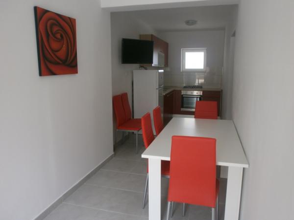 Newly-built apartments on the ground floor of a family house and a comfortable 85 m2 apartment on the first floor of the house are fully equipped (air conditioning, satellite dish, internet, microwave oven). Located 30 meters from the sea and 50 meters from the center of the town with shops, restaurants, butchers, pharmacies, post offices, ambulances and libraries.