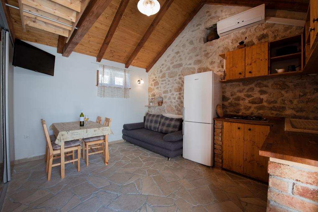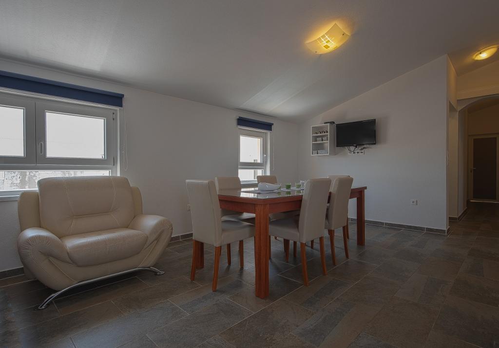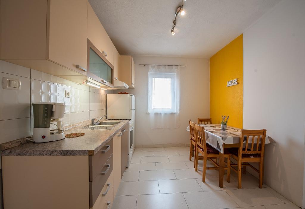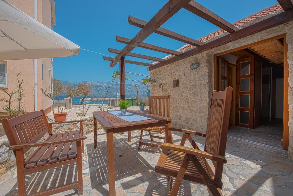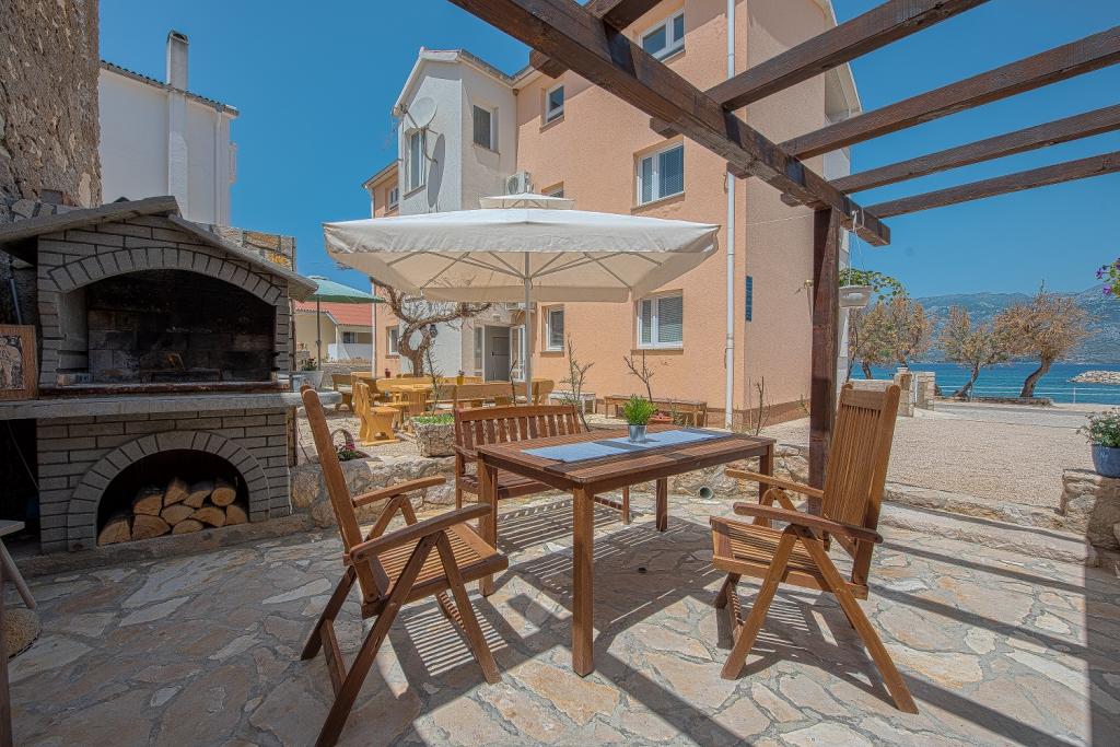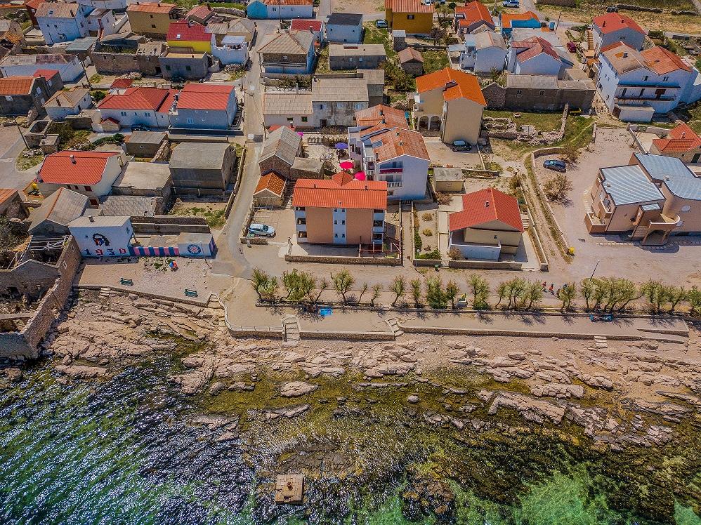 Seafront modern and fully equipped apartments situated in a quiet village Razanac. The facility is located 10 meters from the beach, which is suitable for children on the promenade that stretches along the coast. All apartments have terraces overlooking the sea. With only the use of the apartment guests can use the summer kitchen in the yard: grill, outdoor showers and sofas. In the same yard is originally Dalmatian stone house over 150 years old repaired and furnished 2015 years. The house of 36 m2 consists of a kitchen, dining room, bathroom and toilet, bedroom and sofa bed in the living. In the attic there is a gallery which can be used also for sleeping. The house is a terrace of 20 m2 with garden furniture and barbecue. Maximum use of space and a terrace overlooking the sea guarantee you a pleasant and memorable holiday.