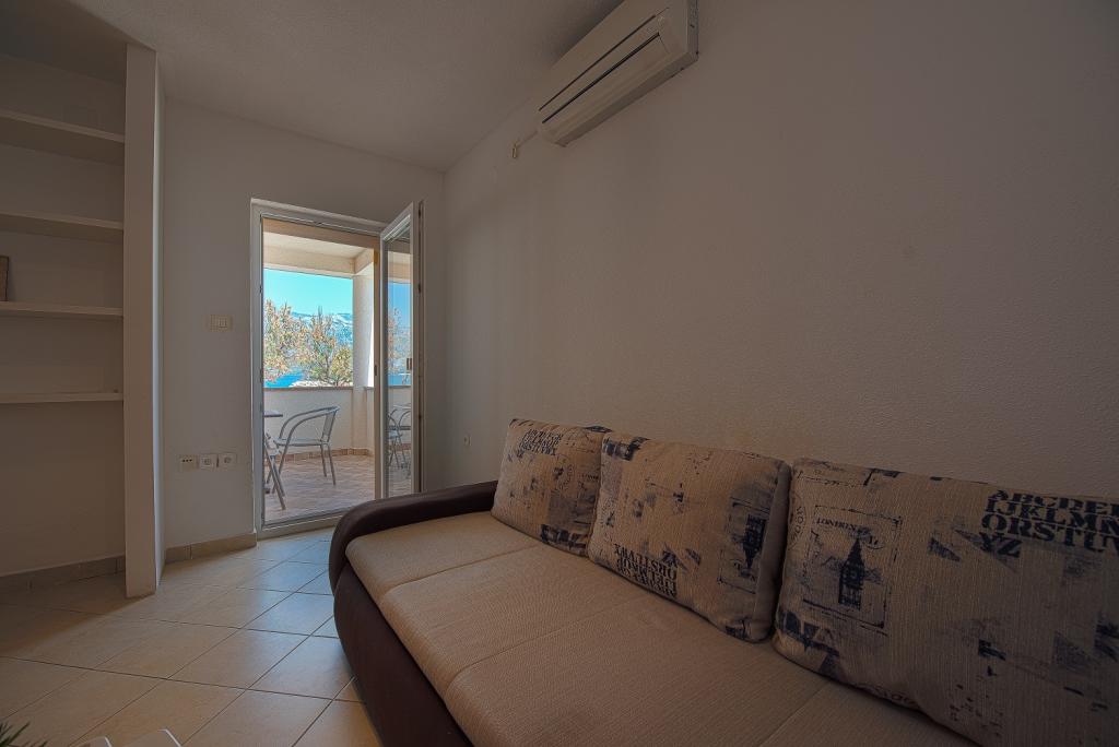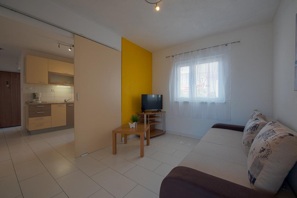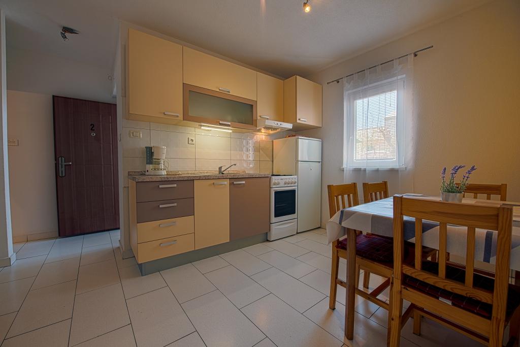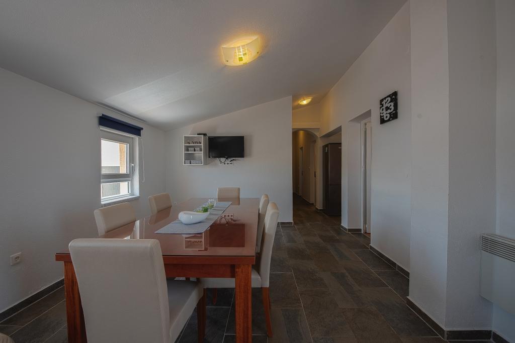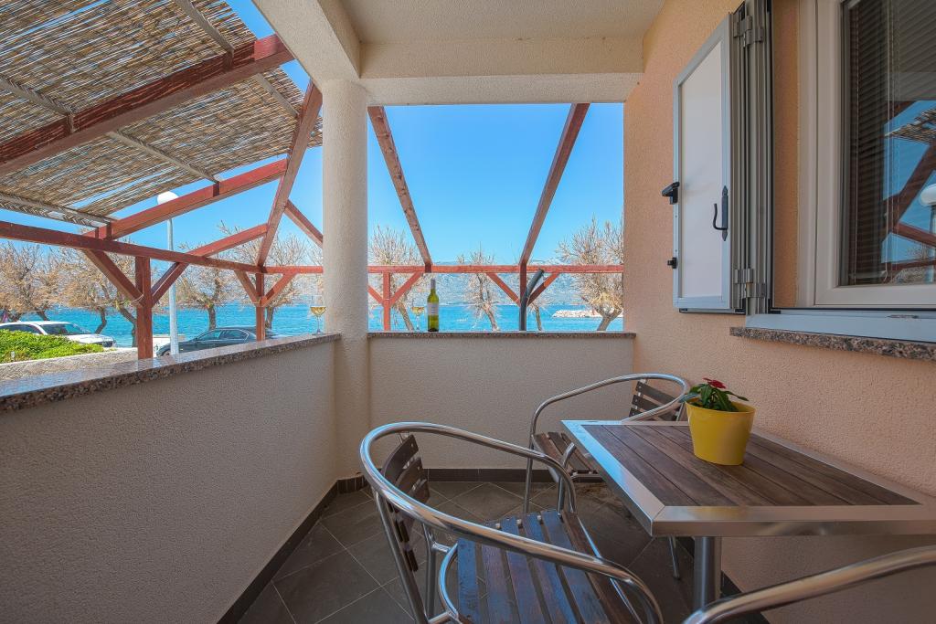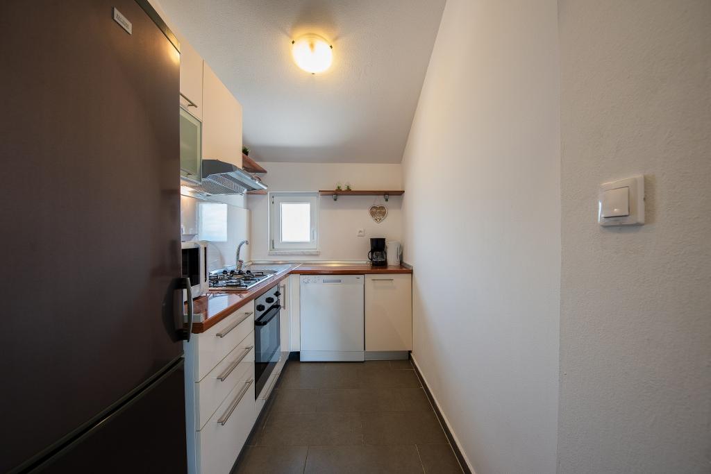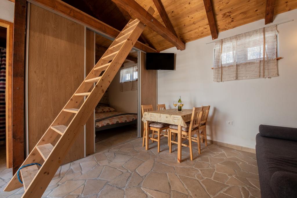 Seafront modern and fully equipped apartments situated in a quiet village Razanac. The facility is located 10 meters from the beach, which is suitable for children on the promenade that stretches along the coast. All apartments have terraces overlooking the sea. With only the use of the apartment guests can use the summer kitchen in the yard: grill, outdoor showers and sofas. In the same yard is originally Dalmatian stone house over 150 years old repaired and furnished 2015 years. The house of 36 m2 consists of a kitchen, dining room, bathroom and toilet, bedroom and sofa bed in the living. In the attic there is a gallery which can be used also for sleeping. The house is a terrace of 20 m2 with garden furniture and barbecue. Maximum use of space and a terrace overlooking the sea guarantee you a pleasant and memorable holiday.