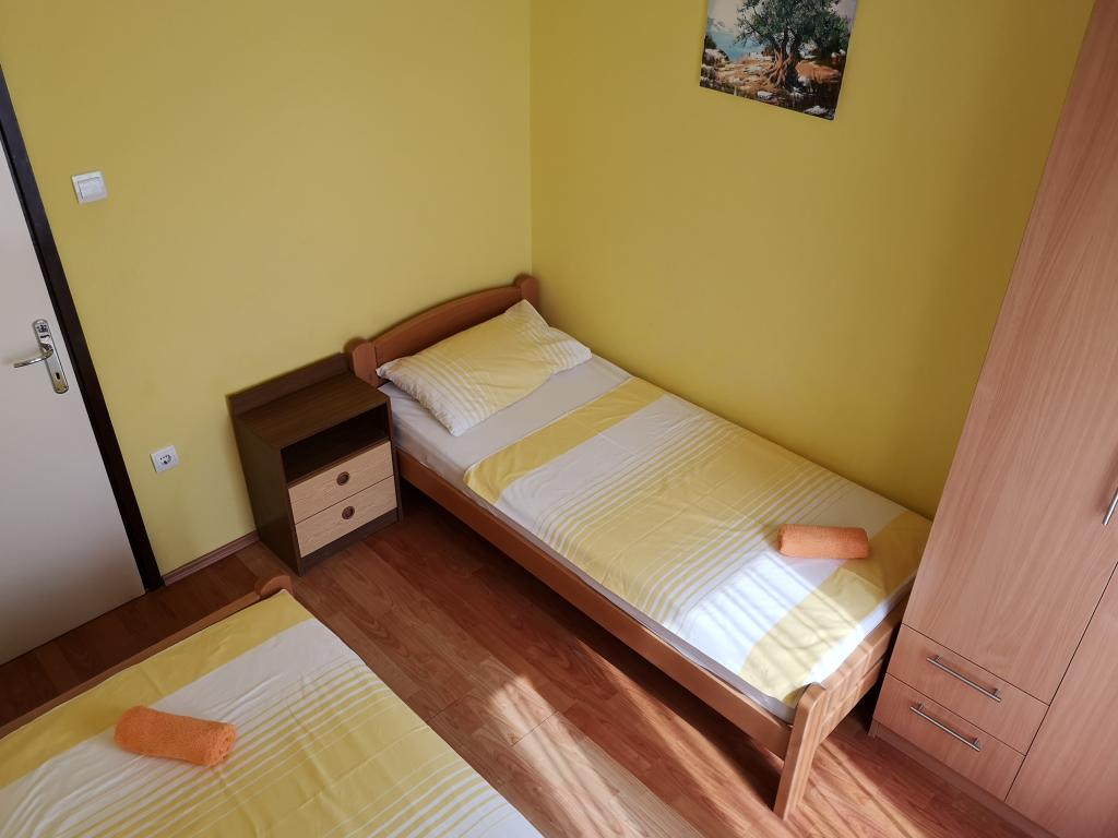 The apartment consists of a spacious living room with sofa corner, bedroom with double bed, kitchen and bathroom. all very spacious and clean. the kitchen has a gas stove, oven and large refrigerator. The apartment has no air conditioning but it is not needed. There is also WiFi. The network is available free of charge at the beach in 30 minutes session. The building is located in a quiet area. The night did not reach any noises. The beach is closer than it seems looking at the Google Earth route takes 3-4 minutes. It features a whole yard at the building where you can put the car. Housewife practically not seen. Very good place for those seeking peace. I would recommend.
