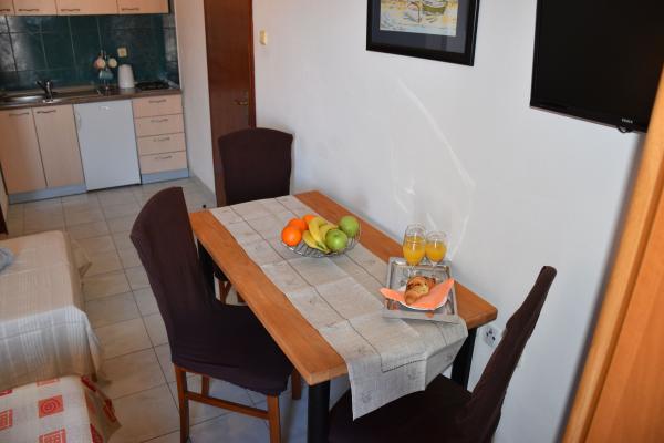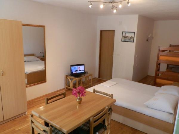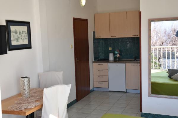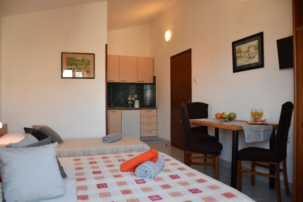 Modern furnished apartments with a kitchen, bathroom, satellite TV and a balcony. All balconies overlook the sea, guests have a parking place and the right to use the grill in the yard and have access to free wi-fi The apartments are located in a quiet village Evidences which is 20 km away from the city of Zadar and the airport. The apartments are located 20 meters from the sand and pebble beach and 100 meters from the sports fields.