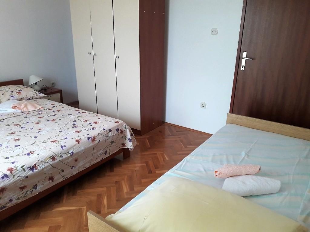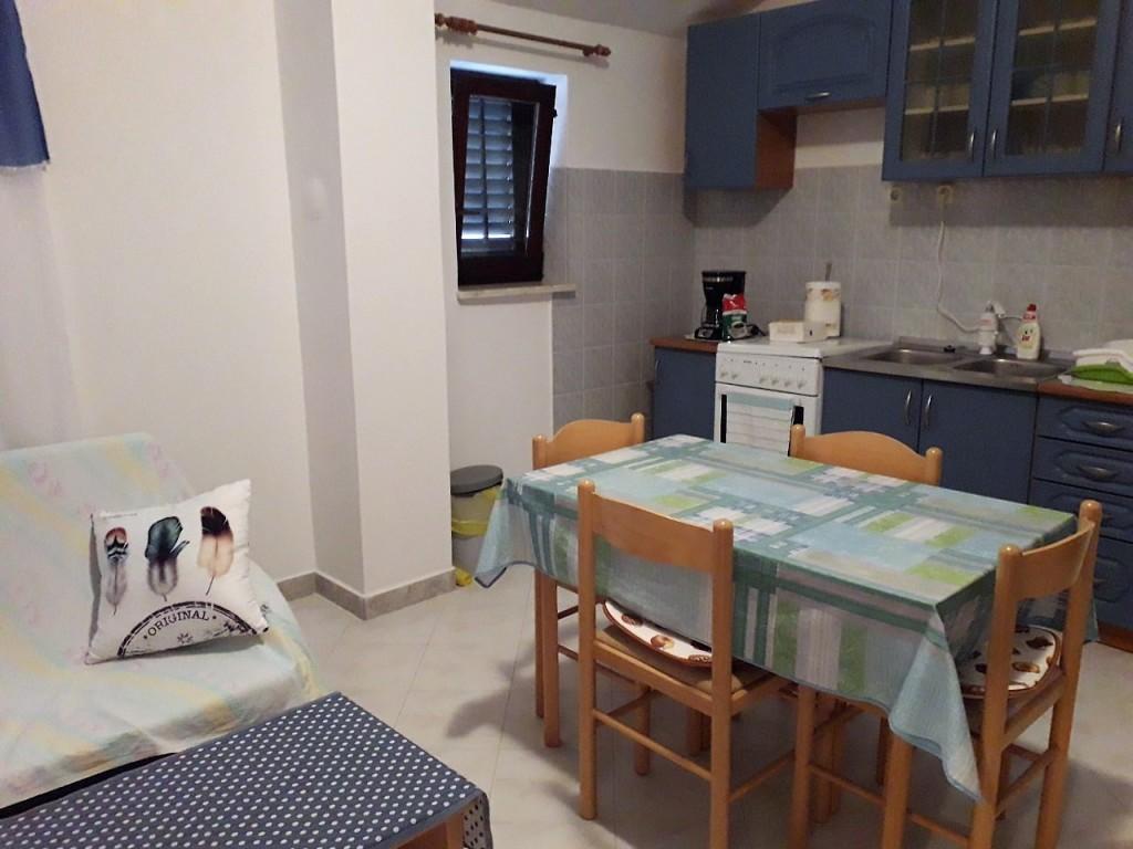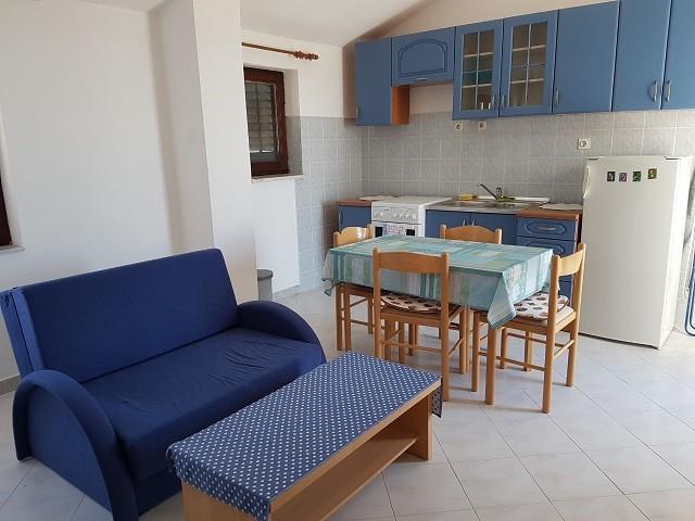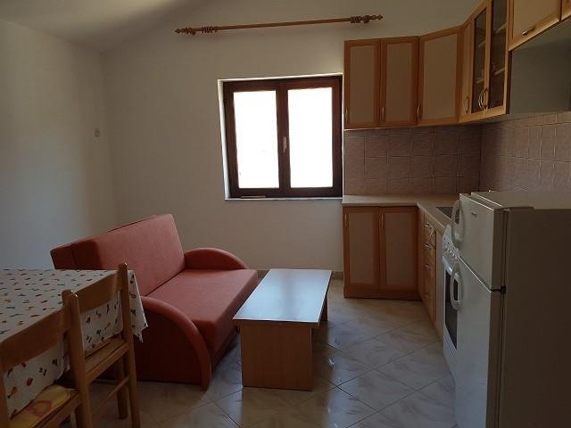 The apartment is located in a house on the first floor. The apartment has a separate bedroom with a double bed and a single bed. From this room there is an exit to the balcony overlooking the sea and the beautiful landscape. In the living room there is a sitting set that also serves as an extra bed. The kitchen is connected to the living room and is equipped with kitchen utensils and cookware, cutlery, refrigerator, microwave and kettle. The kitchen also has a balcony. The bathroom is equipped as standard with a shower and electric boiler. Air conditioning is in the kitchen. An outdoor grill is available for use. You can reach the beach by car in 2 minutes or walk in nature for only 10 minutes. Distance to the bakery and the nearest restaurant is about 800m while to the shop (mini-market) and another restaurant about 1500m.