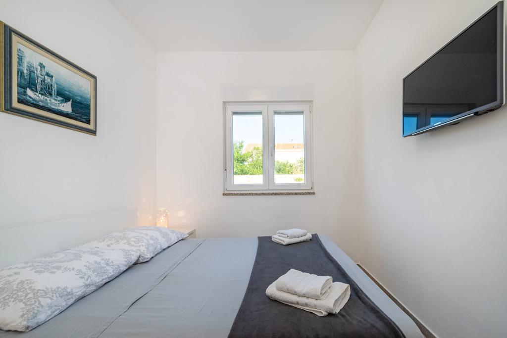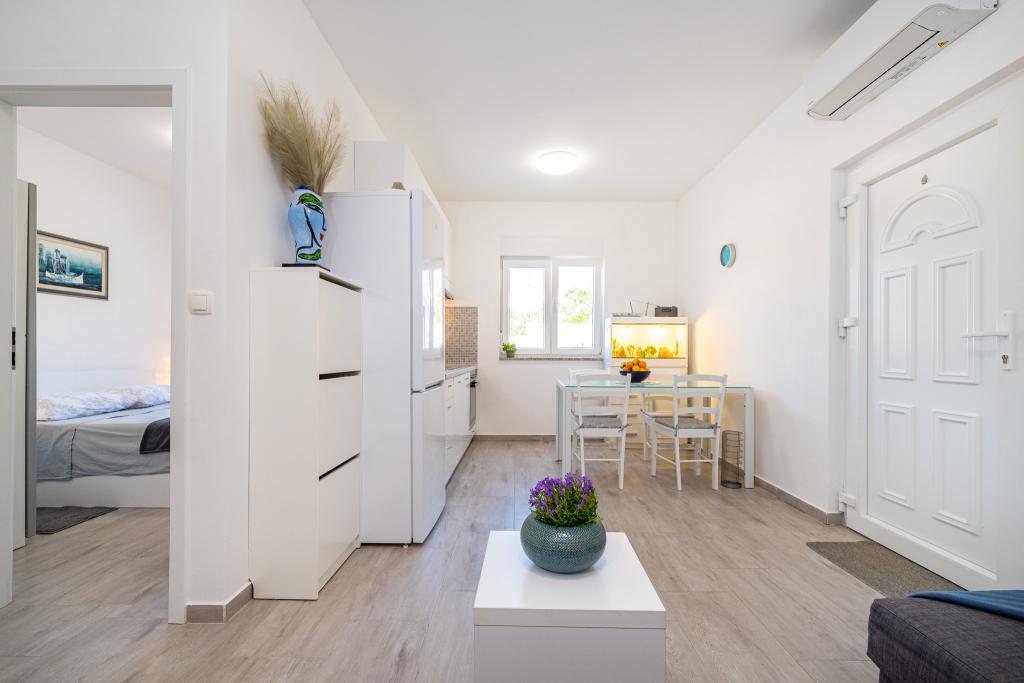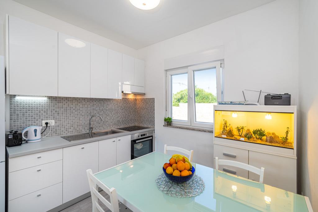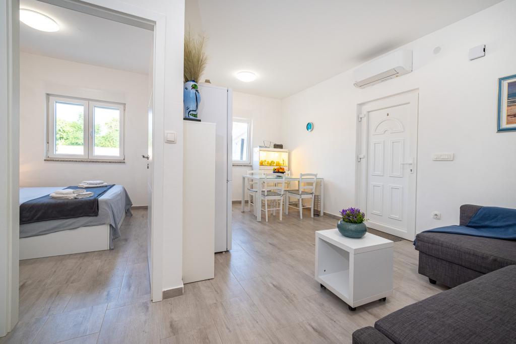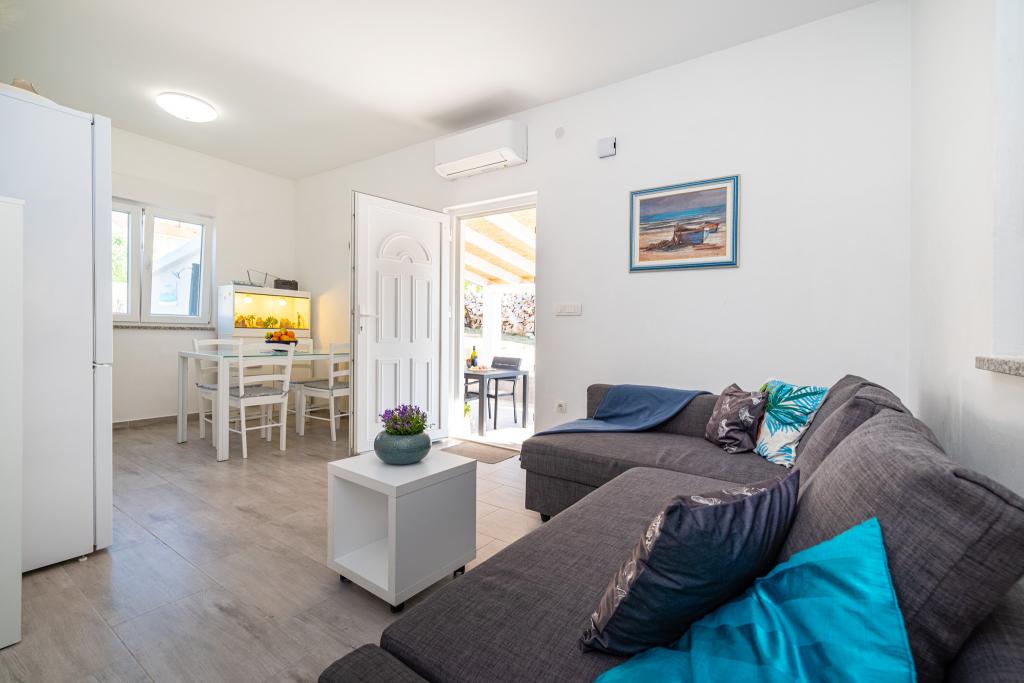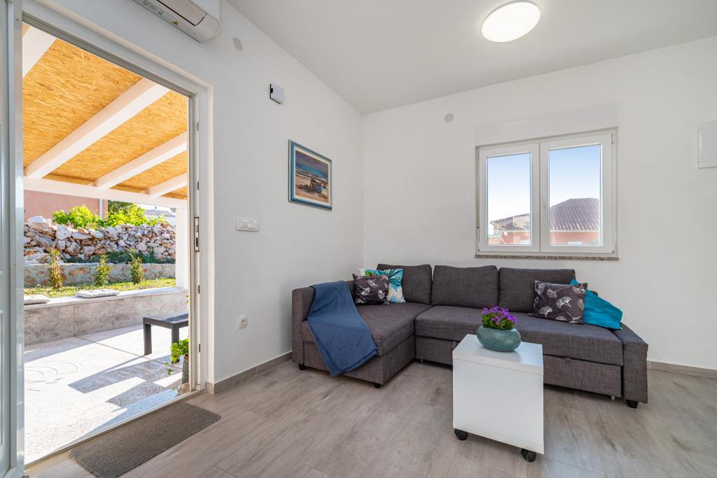 Fully equipped house, located 150 m from the sea, in a quiet part of Ražanac. It consists of 31 m2 of living space, 25 m2 terrace and 430 m2 garden with locked parking. The house has a capacity for 4 people. In the bedroom there is a double bed measuring 160 x 200 cm and in the living room a sofa bed with a reclining part measuring 140 x 200 cm. The facility is located 3 minutes walk to the center and other necessary facilities such as shops, restaurants, markets, post office, ambulance and ATMs. Ideal for a quiet and relaxing holiday.