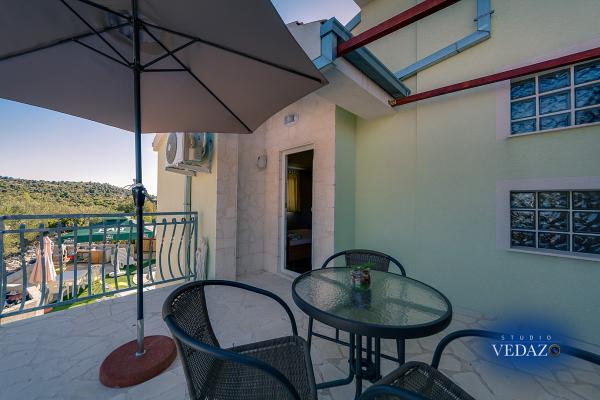 Beautifully decorated apartments are located in the small fishing village of Ražanj near Rogoznica. The house has an outdoor heated pool of 30 m2, a large grill, parking, satellite TV, internet. The pebble beach is about 350 m away. The town center is 300 m away and contains a shop, cafes and three restaurants. We do not accept pets.