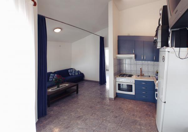 Fully equipped and modernly equipped apartments just a minute walk to the beach. From the object to the shop and restaurant is about 400m or 6 to 7 min walk. Apartments have a semi-covered terrace of about 20m2 with a view of the beach. The living room can be tiled with a curtain to create a third bedroom. We wish you a happy trip and a pleasant stay in our apartments Ana and Mato
