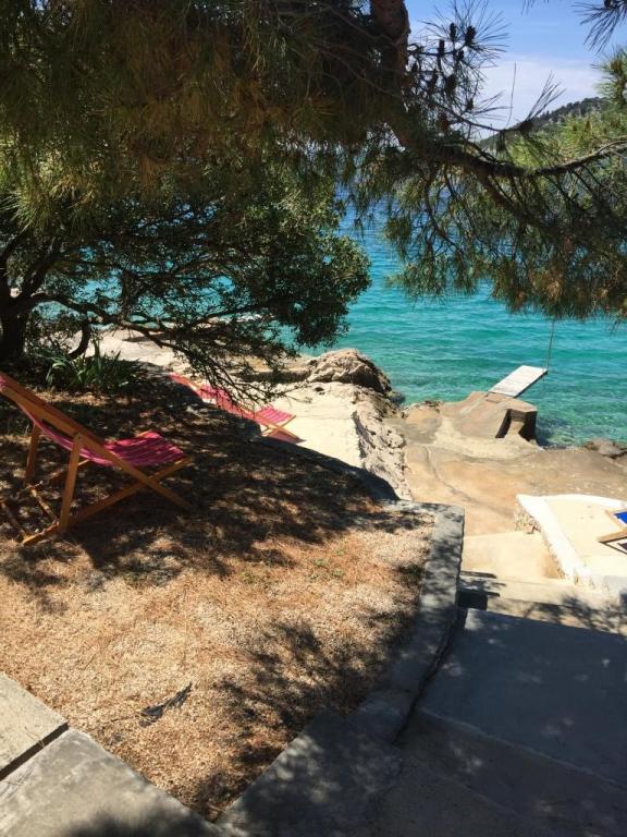 The house is located in Ražnje in the bay of Ljoljinica, 10 km away from the town of Rogoznica, in a quiet place, 10 m from the sea, in the countryside. Apartment 1, 43 m2, ground floor entrance, 2 bedrooms with sea view, 1st floor, 4 beds, living room with kitchen and dining room: air conditioning on request (surcharge 5 euros/day), filter coffee machine, kettle , TV, satellite program, internet. The apartment is especially well furnished and equipped, bathroom with toilet, parking (covered). Apartment 2 43 m2, 1st floor, 2 bedrooms, 4 beds, living room with kitchen and dining room and sea view: (air conditioning on request (extra charge 5 euros/day) filter coffee machine, kettle, TV , satellite program, internet. The apartment is especially well furnished and equipped, bathroom with toilet, Parking (covered). For shared use: outdoor shower, barbecue, parking next to the house.