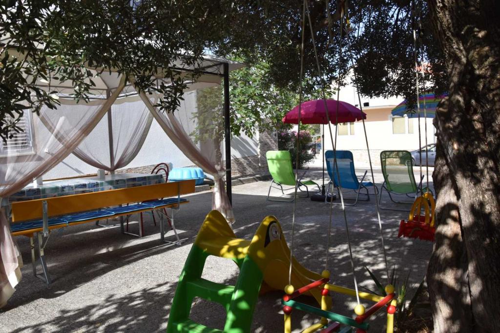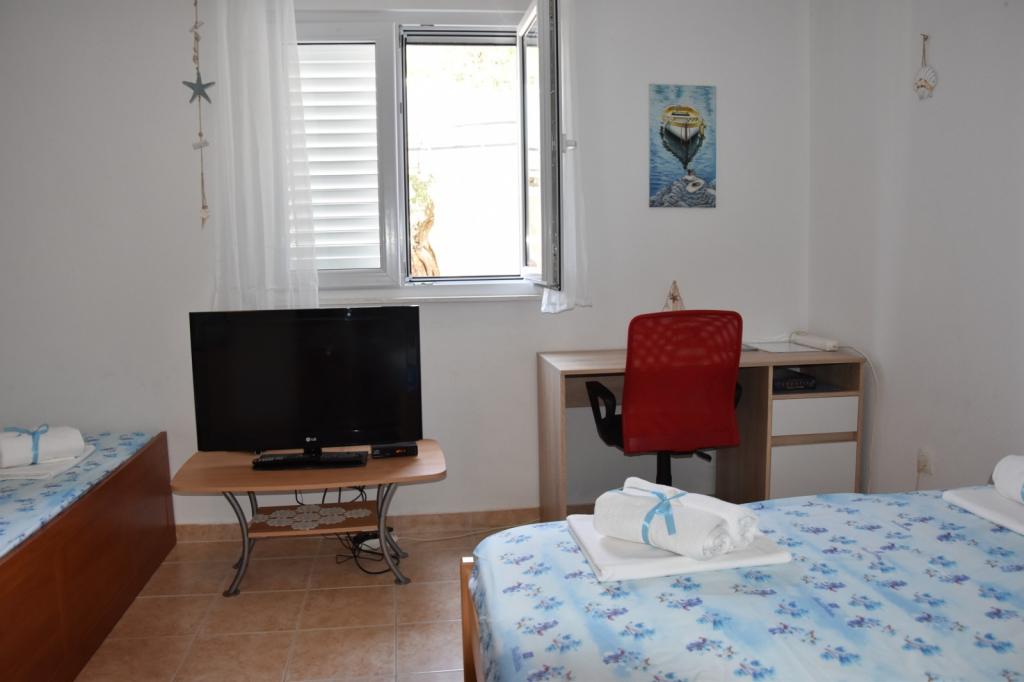 Apartments Meri are located in Razanj near Rogoznica. The main beach, as well as the center of this quiet, Dalmatian town can be reached on foot in 5 minutes. The apartments are fully equipped, air conditioned, TV, WIFI included, parking space provided. Both apartments also have a washing machine. The apartments are located on the ground floor and can be rented as separate units or in full, which is ideal when two families want to spend a holiday together because guests have a large yard with barbecue, for socializing and enjoying!