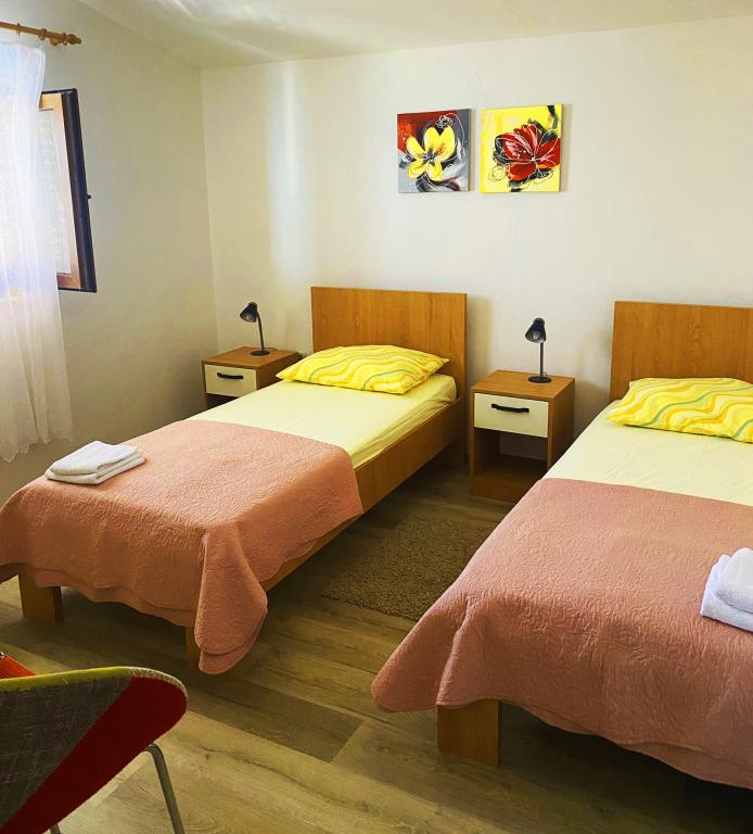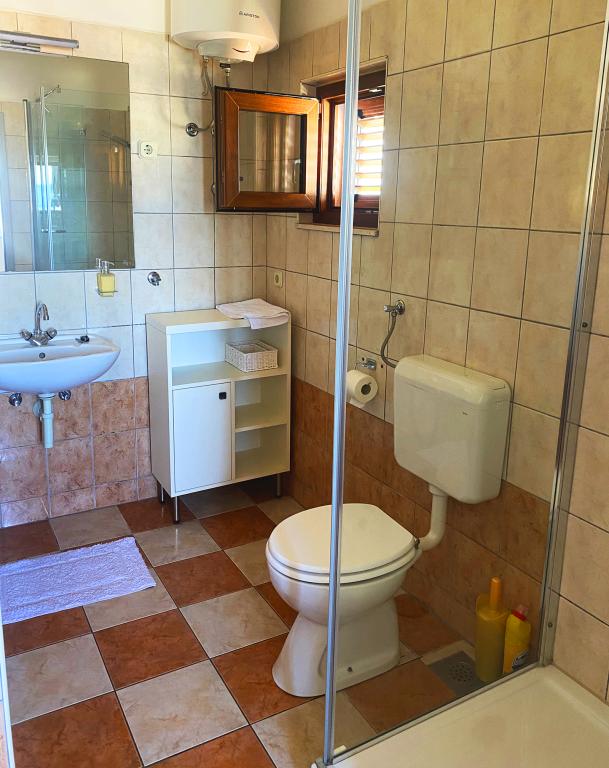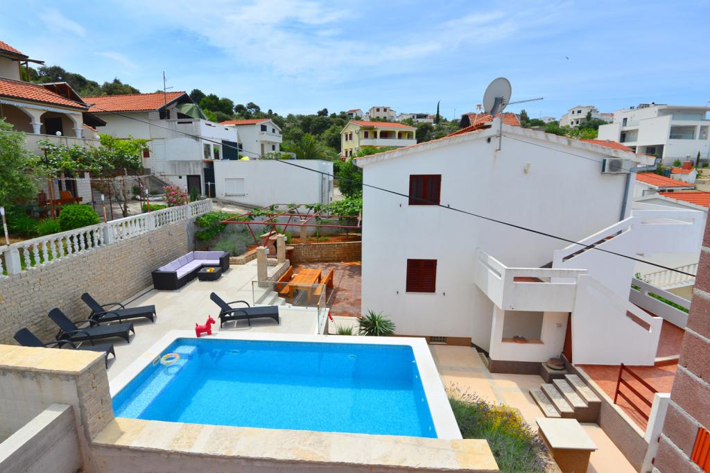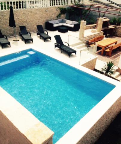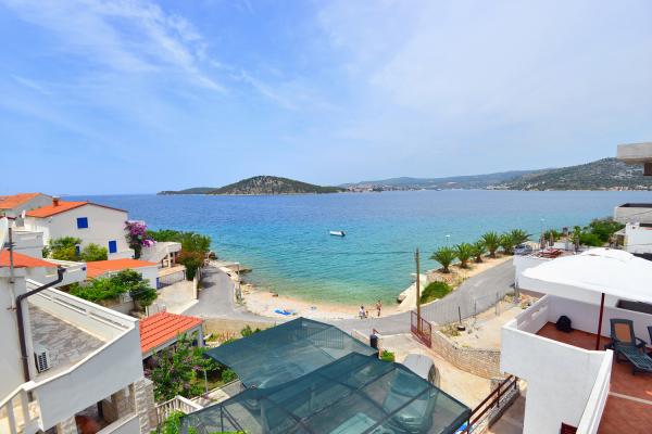 The apartments are extremely comfortable and are located in a house next to the sea. Just above the small beach. The beach is sandy and ideal for families with children. Guests who want a more intimate stay by the sea can opt for stijenovite parts of the coast which can be reached in a short walk. The apartments consist of two spacious bedrooms, bathroom, kitchen and large living room. Each apartment has a terrace with table and chairs. Our guests enjoy morning coffee on the terrace which offers fantastic views of the sea and the sea. Beside the house is a swimming pool shared by the guests accommodated in our two apartments. Beside the pool is a spacious garden equipped with lounge chairs and dining table. Guests can use a new grill that is set for their use. The apartment is free internet use. Distance to the small market is 50 meters. At the same distance is a restaurant / pizzeria. Distance to town Ražanj is 500 m. The pleasure of a walk to Ražanj because the path next to the sea