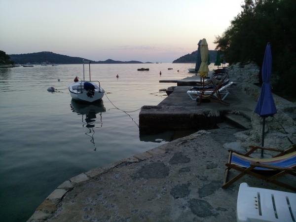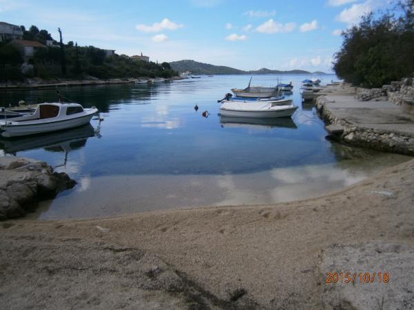 Quiet place, hosts very kind, helpful in everything and welcoming. We stayed 7.2017. Sea calm, warm, steep water entrance suitable also for children. Beach umbrellas for guests. Beach in the vicinity, a few steps from the apartment. On all doors and mosquito protection windows, so you can freely open the window overnight and sleep in the inhaling smell of the sea. The house is well insulated and not hot, so we used air conditioning only occasionally. It has an outdoor shower with hot water, if anyone wants to shower when leaving the sea. Bread, bread, various treats, fruits and vegetables, fish, and sometimes ice creams, and just a few steps away from home, are included daily in the morning. Very comfortable in every respect. Close to a beautiful neighborhood for walking. Parking in front of the house. You simply have a guarantee for a wonderful vacation. We recommend to anyone who wants to truly relax.