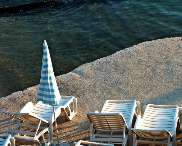 Apartments overlook the sea.