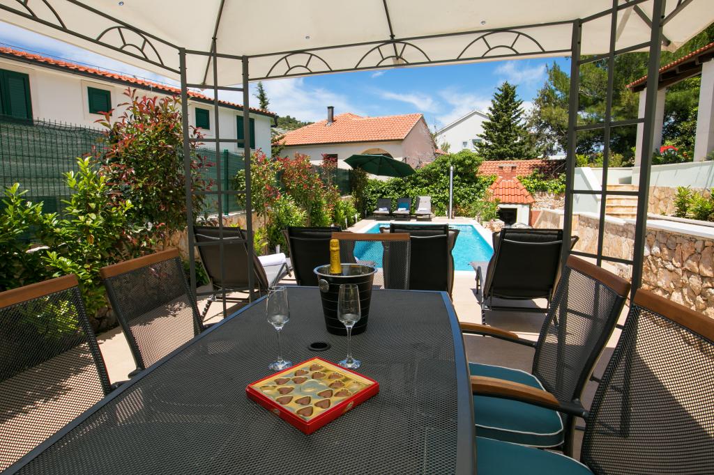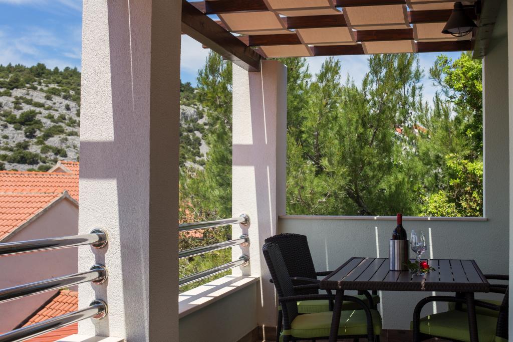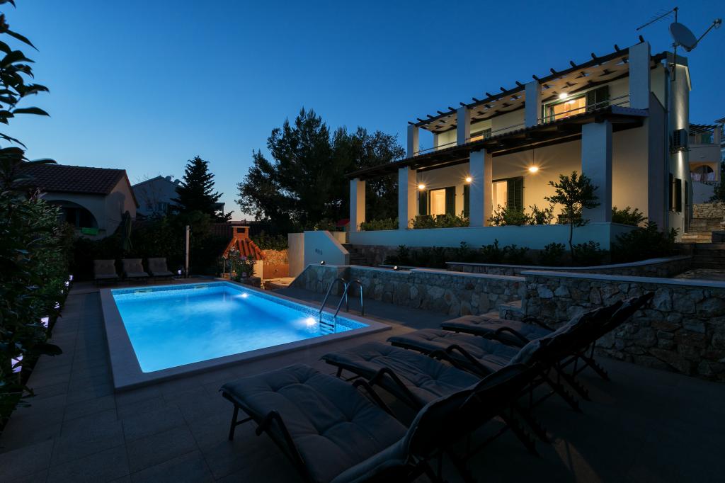Apartments Mešin are located just 40 meters from the sea. From the terrace of the apartment you can enjoy the view of the sea. Apartments 1 and 2 are located in a new house and are modernly equipped. Villa Marina is a 2 storey holiday home with a pool, consisting of 2 kitchens, 3 bathrooms, 4 bedrooms and 2 living quarters with sofas, so that the maximum number of persons can be accommodated in Villa Marina 10. We are particularly proud of our balconies with a beautiful view of the entire bay, which you can admire by the enchanting sunset. Nearby you have everything you need for a peaceful and active vacation, sea, beaches, bicycle and hiking trails, restaurants and cafes.