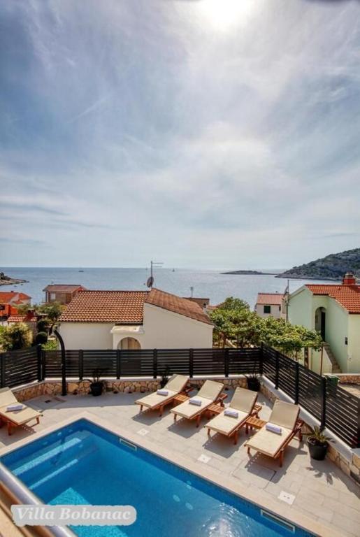 Enjoy a newly renovated vacation home with a heated pool and a beautiful sea view, just 73 meters from the beach. The house consists of 3 units with a total of 5 bedrooms, 3 bathrooms and 3 kitchens. Private closed parking, air conditioning, grill and internet are included in the price. Possibility of moorings for the boat. Welcome