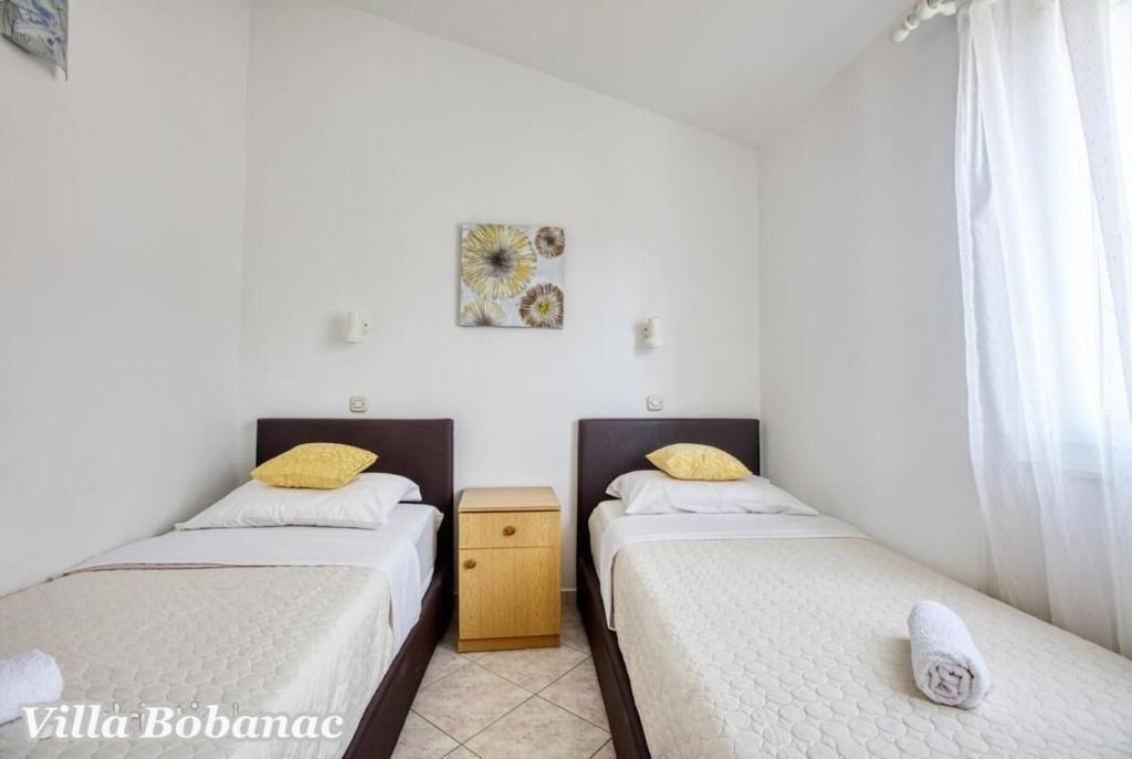 Family suites Bobanacových first time we visited with our 12-member gang in 2011. He took us pleasant host and close the sea. It's a place where there are no crowded beaches, where the nerves tape recorder, which goes dealers shipping companies inviting to trips. Is there a typical Czech relax and comfort. Sea is 80 meters from the apartment. The beach is rocky with buildings built concrete panels where you lay the mat and you can bask. The sea is very clean, the beach is suitable for swimmers, there is a gradual approach to the sea. This can be found in the village of 1 kilometer. We first chose a place by the distance from the sea and apartments by price. Hardly the coast prices are so convenient as it is here in Razanj. Since 2011 we have been there every year in late July and August, and we still do not want to leave this beautiful place and look for another. Who wants a full 14 days just roll the sea, might not pull your heels. Every day in the morning runs bakers and fishermen. They stop at the entrance to the house. Prices of bread and pastries and fish are only slightly higher than us. Who does not want to just roll, can go and see the sunset - there are three major habitats, where it can be seen - a peninsula with a chapel about 2 km away, a military fortress on a hill about 80 meters 1 mile away and the hill above the village about half a mile away. Who would you like to be free of worries, can go down to the nearby larger towns Primosten, Trogir or to larger towns Sibenik, Split. For Sibenik are known waterfalls of Krka, which can be reached in about an hour's drive. But I would recommend a visit early in the morning from 8:00 am-now, when there are no crowds. We're a little cyclists, we have bikes there with him, but the terrain around not very suitable for classical Czech cycling. There is in fact hilly terrain, which evaluates the contrary, those who want to ride around a bit. The only road that could be considered as a cycling is a coastal expressway. It gave her a ride safely on a bike, because the base transit is shielded to inland highway and because car drivers are considerate and cyclists are here to look a bit like exotics. The roads are nice without potholes. The apartments are well-appointed kitchen, cooking and dining utensils, air conditioning. Bobanacových family is very friendly, we feel there really s