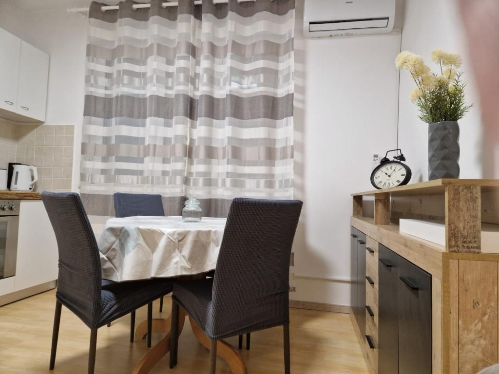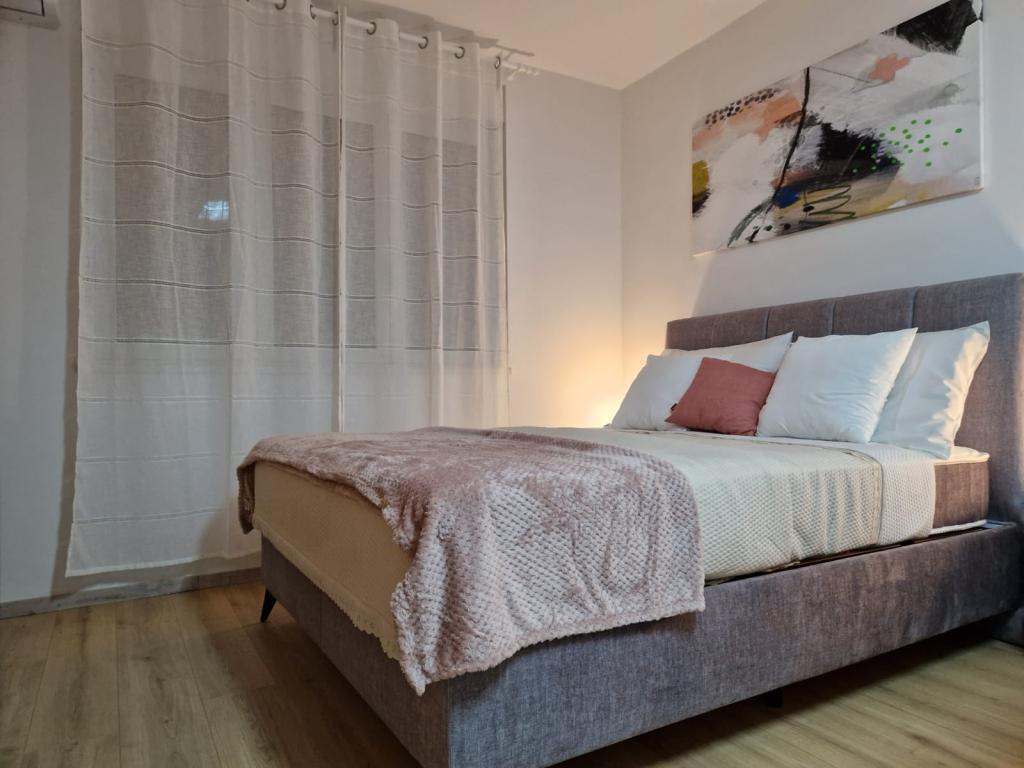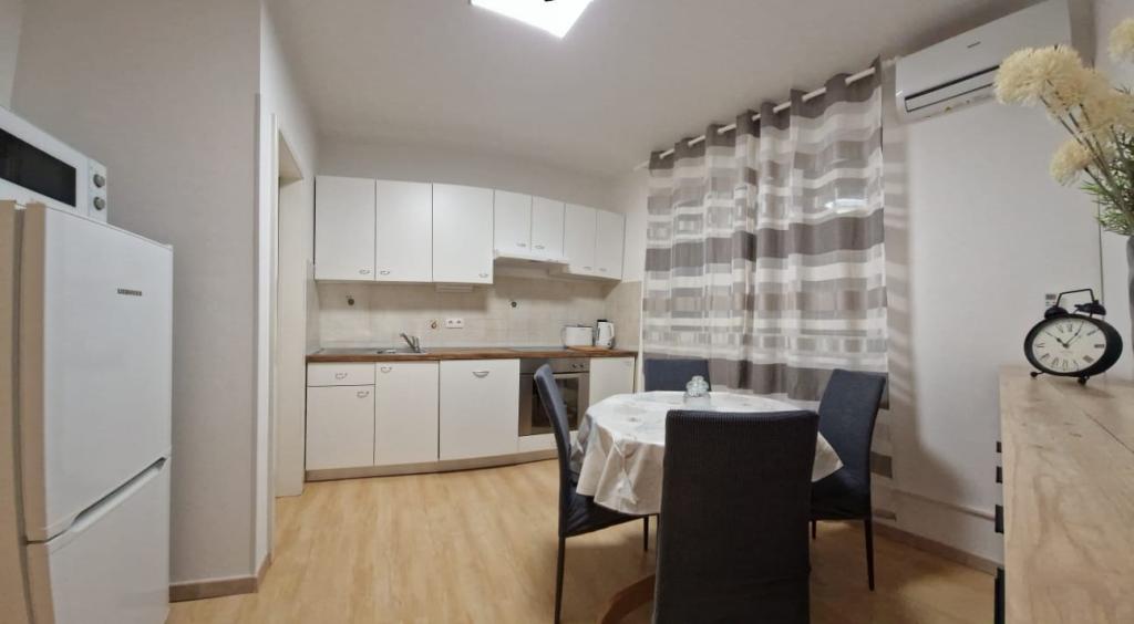 The apartment is located on the ground floor of a residential building, which makes it easily accessible. The interior is modernly equipped for staying at any time of the year: the space is air-conditioned with two air conditioners, and for colder days there is underfloor heating. For your additional comfort and privacy, all windows have roller shutters and mosquito nets. The location is excellent for those who love walking: it takes only 10 minutes to walk to the beach, and 15 minutes to the city center. All essential amenities, such as shops, public transport, pharmacies, hospitals, shopping centers, cafes, etc. are located in the immediate vicinity. The building has its own free parking for residents and guests. Parking cannot be reserved in advance, but since it belongs to the building, it makes it easier to find a place.